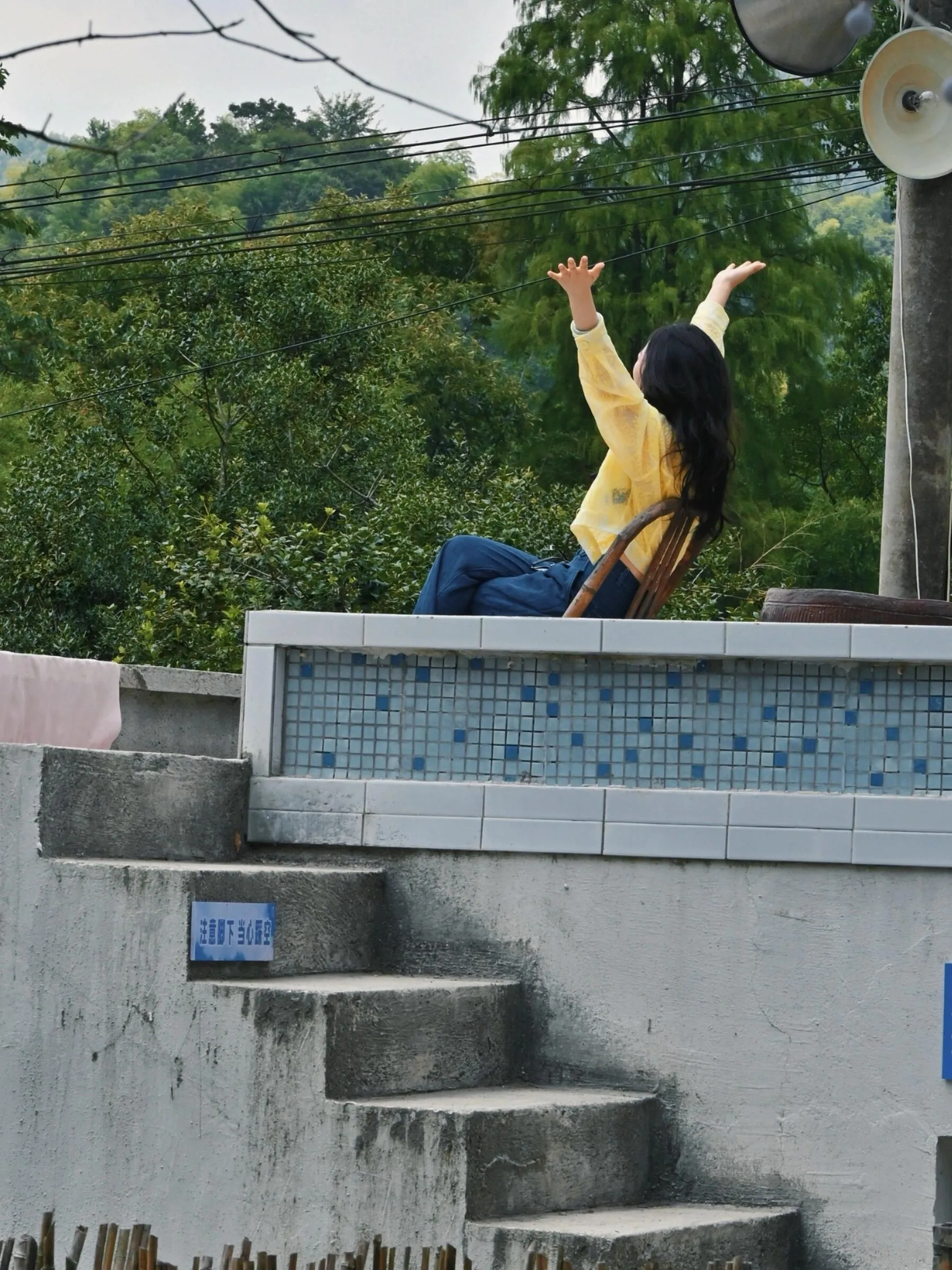 电影播放后的故地重游,小山村比以往热闹了许多,路标、宣传牌、小吃摊随处可见,但更多的是前来拍照打卡的人们。而我更喜欢坐在屋顶的竹椅,听小店周边的喧闹,看远山和村庄处的云舒云卷,渐渐的,嘈杂声低落下去,只有眼前的如诗如画的风景。