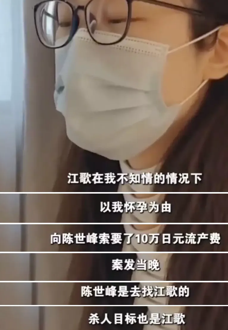 声称江歌私下联系陈世峰,以她堕胎为由索要10万日元堕胎费,说陈世峰是去找江歌的,和她没关系。