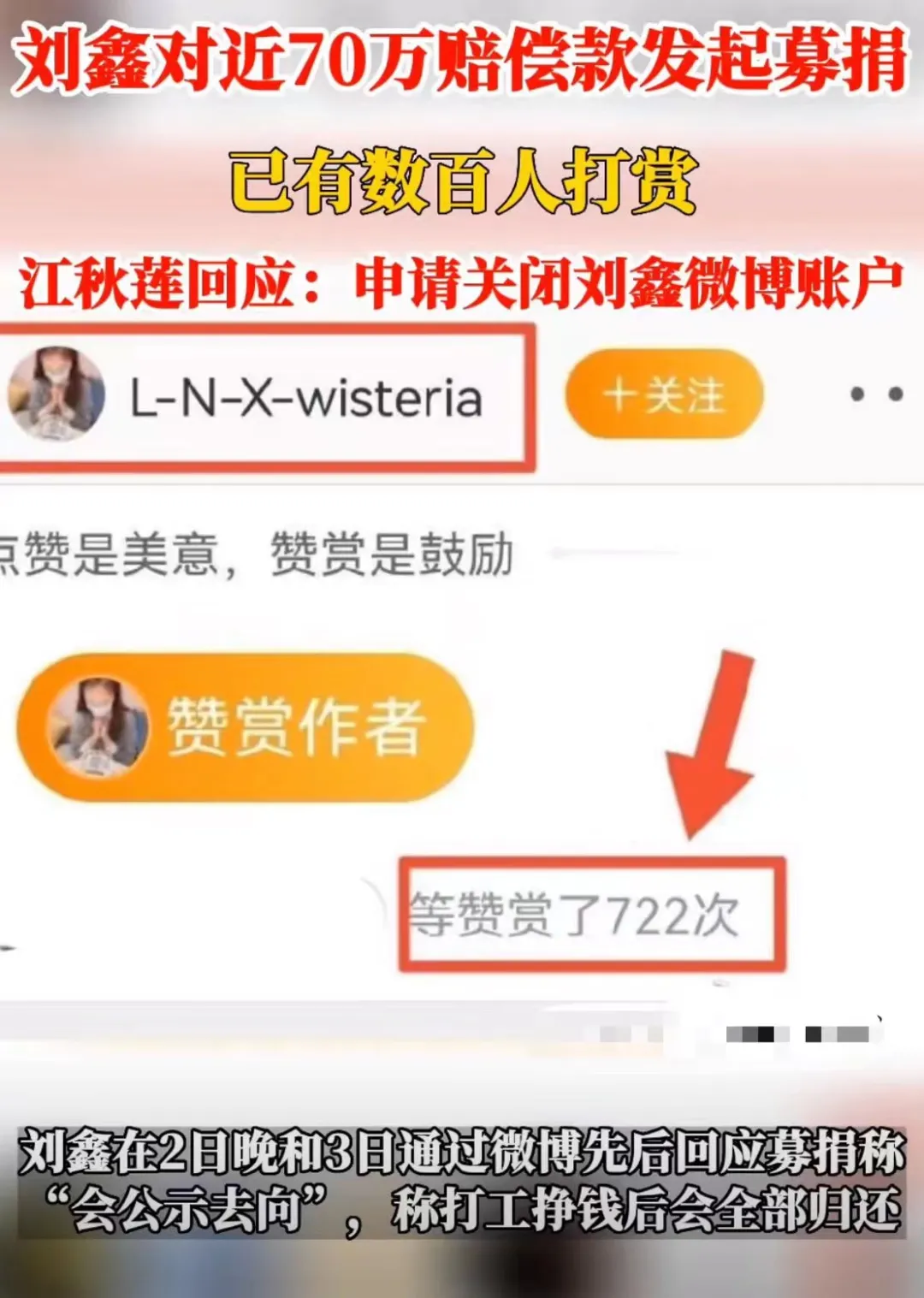 可刘鑫偏偏对她的支持者,认同她的网友,放下面子,撇下骨气,让大家给她捐款。