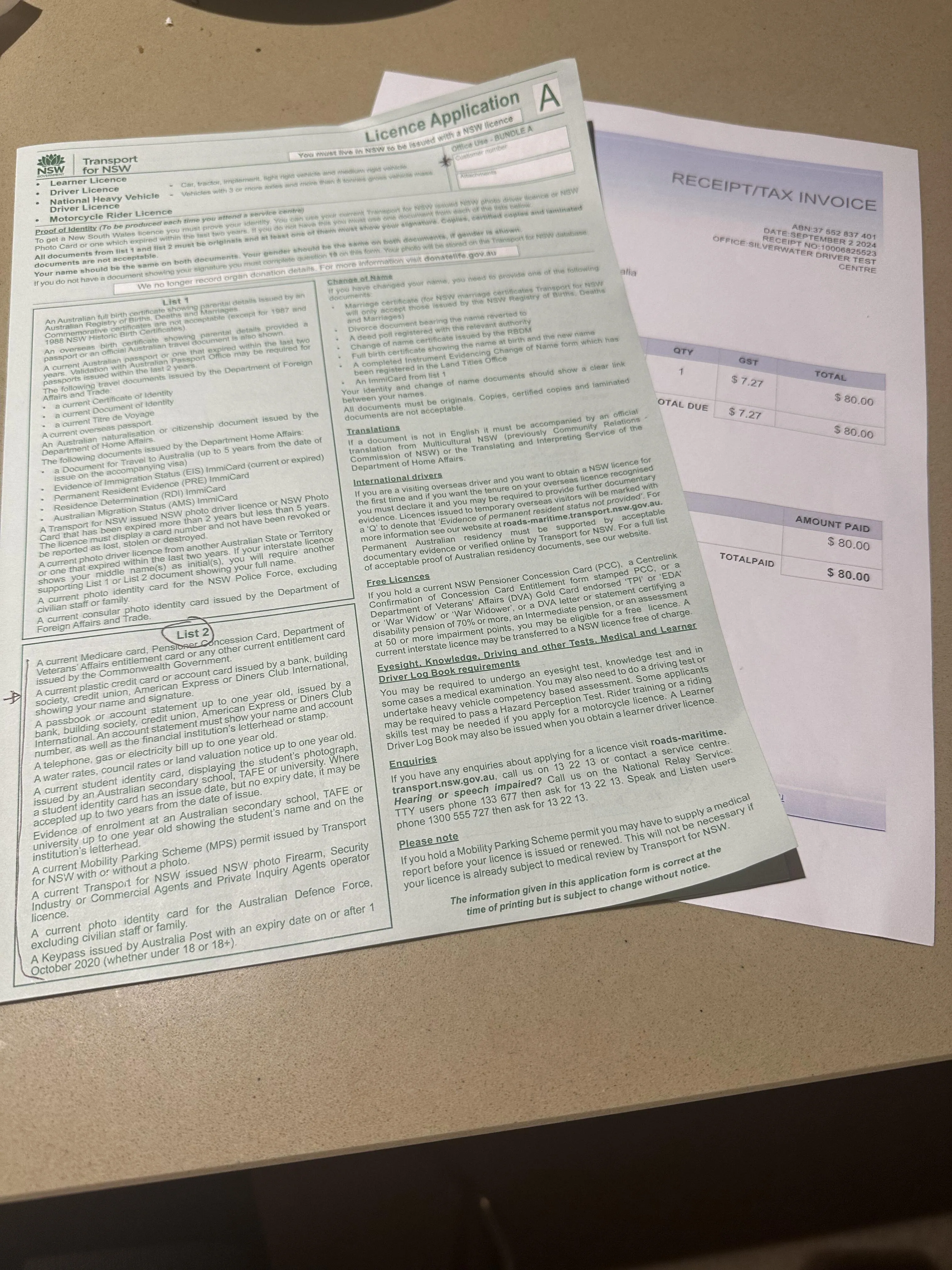 办理翻译件:被叫到后,需要提供国内驾照和护照,并支付80澳元。之后会收到一张白色收据,7个工作日内就能拿到当地认可的驾照翻译件。这是在澳大利亚合法驾驶的第一步。