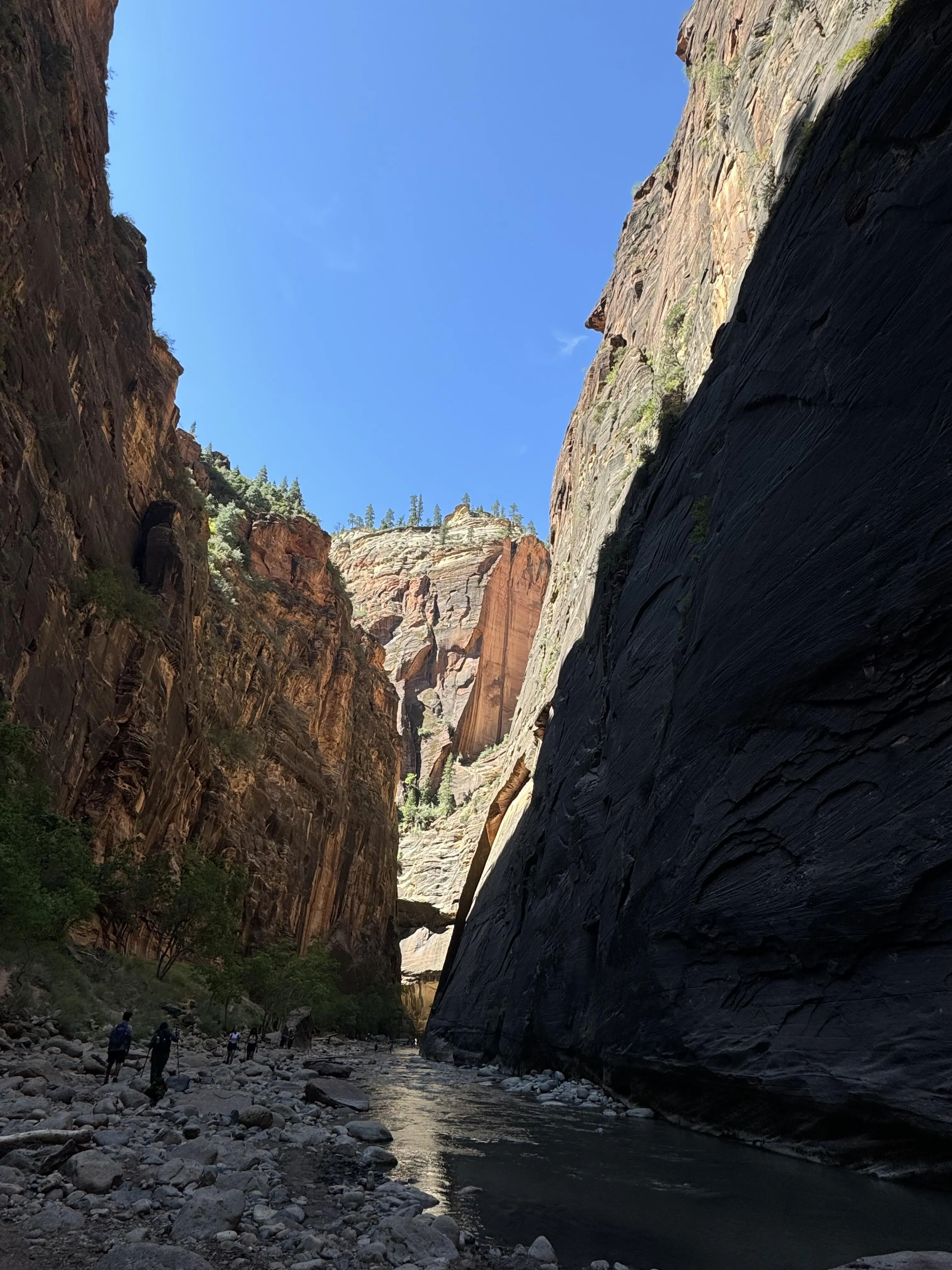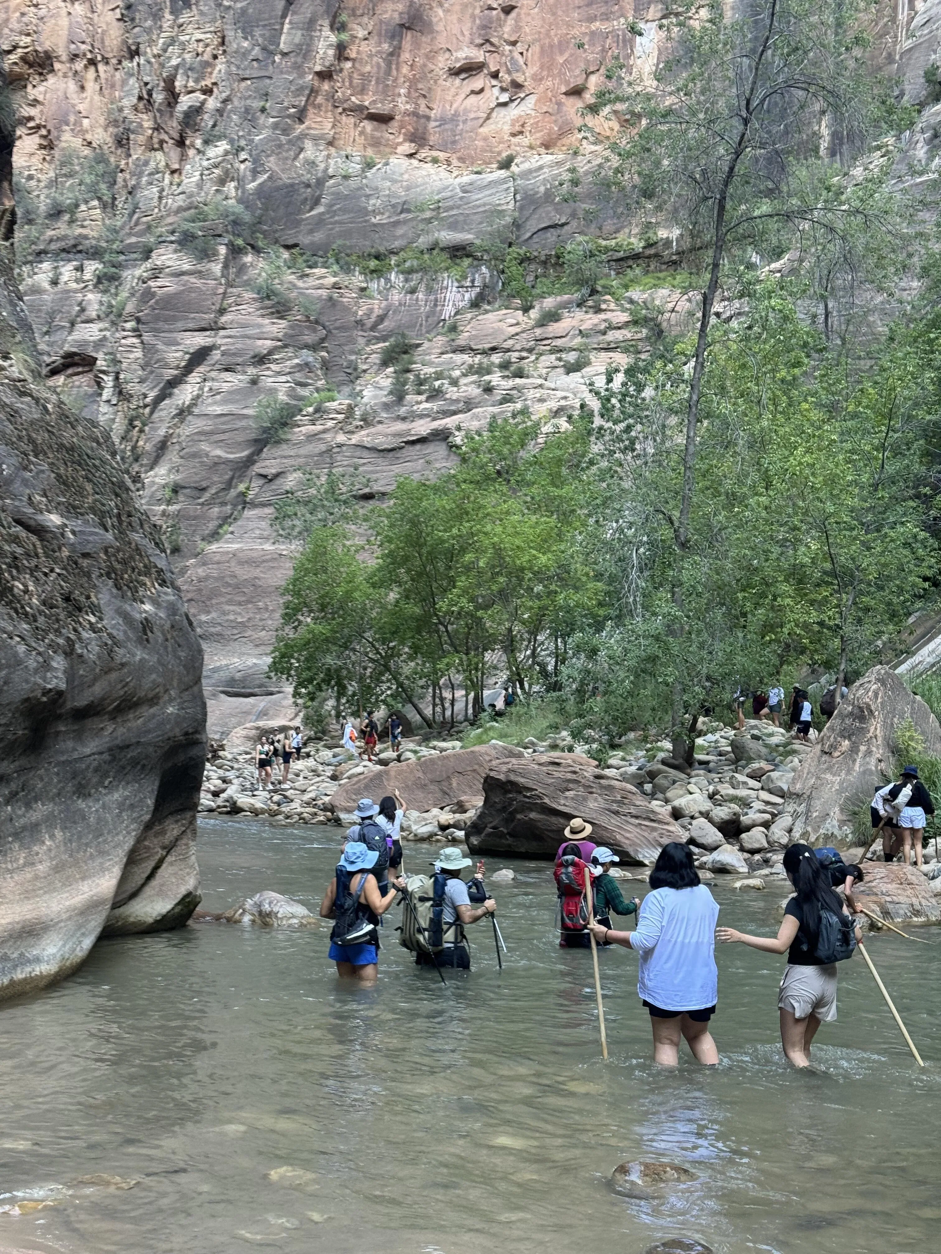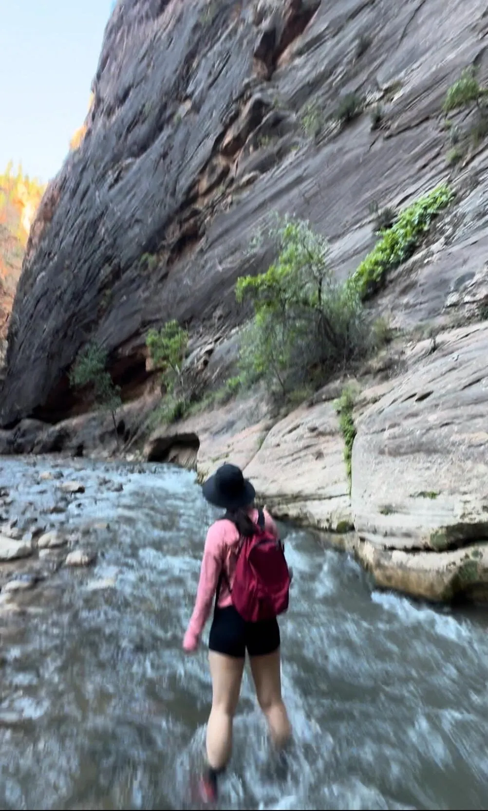 锡安国家公园的The Narrows是一个独特的徒步体验。 对于节日出行,最好的策略是尽量早出发。早上6点多入园寻找停车位时,visitor center附近的停车场已经有不少车辆,但仍有充足的空位。