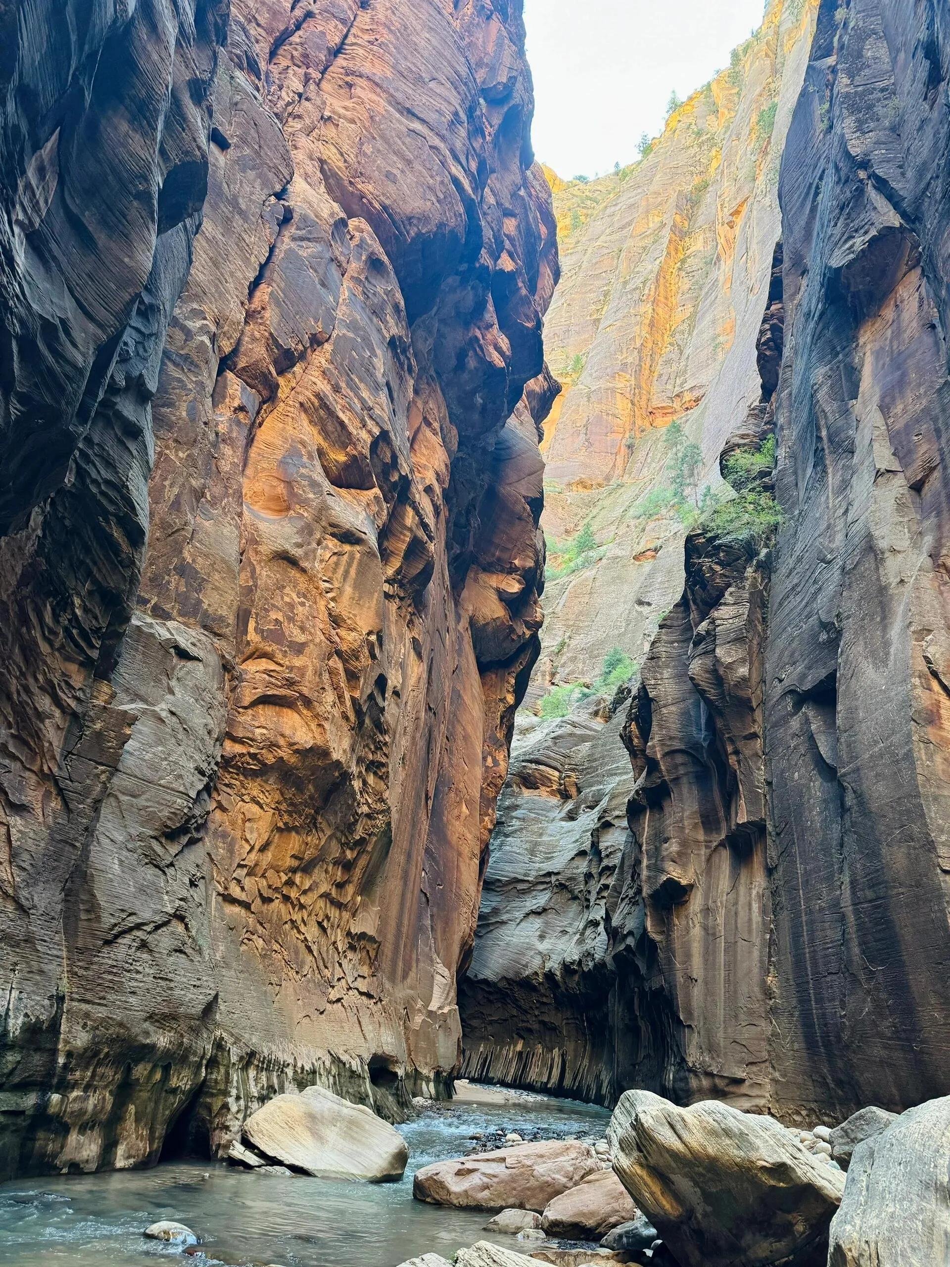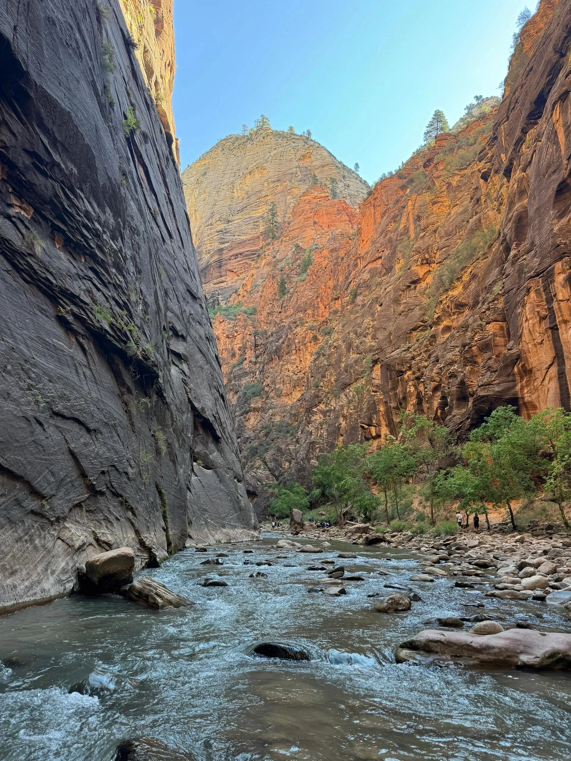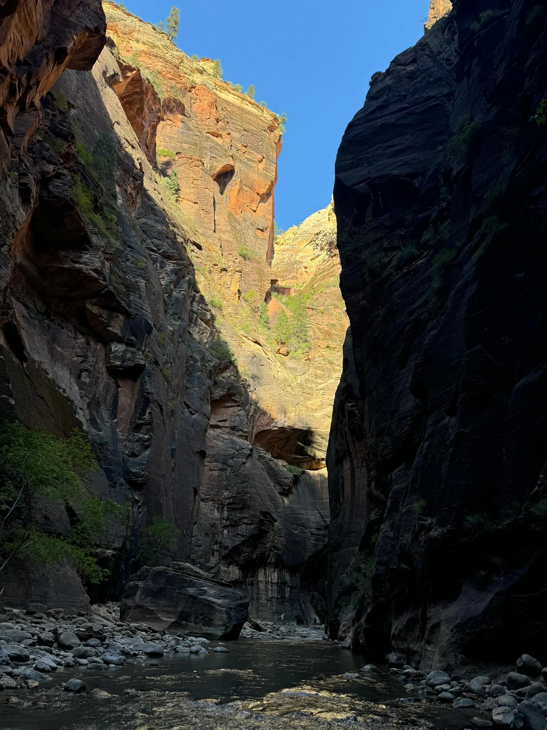 锡安国家公园的The Narrows是一个独特的徒步体验。 对于节日出行,最好的策略是尽量早出发。早上6点多入园寻找停车位时,visitor center附近的停车场已经有不少车辆,但仍有充足的空位。