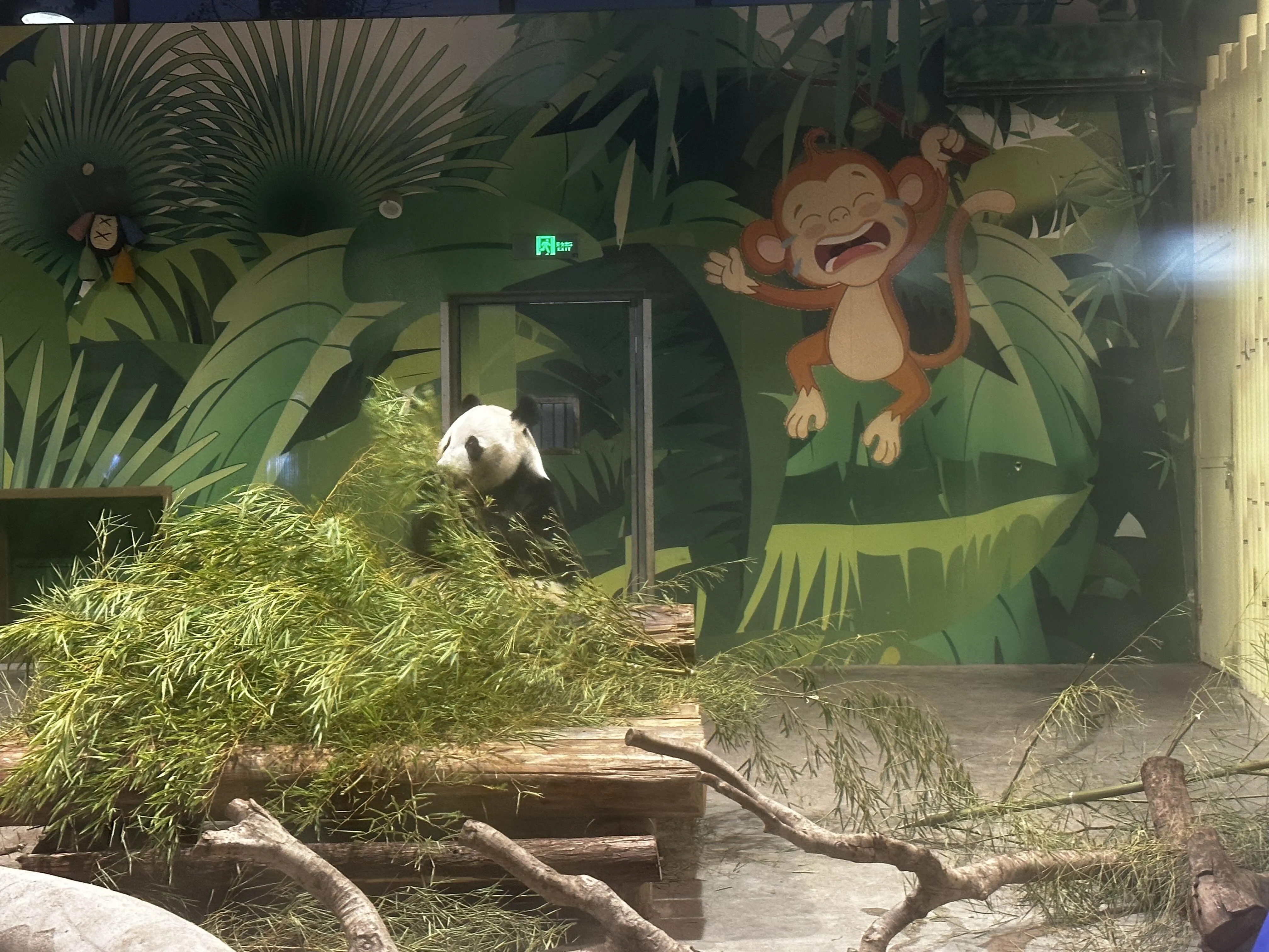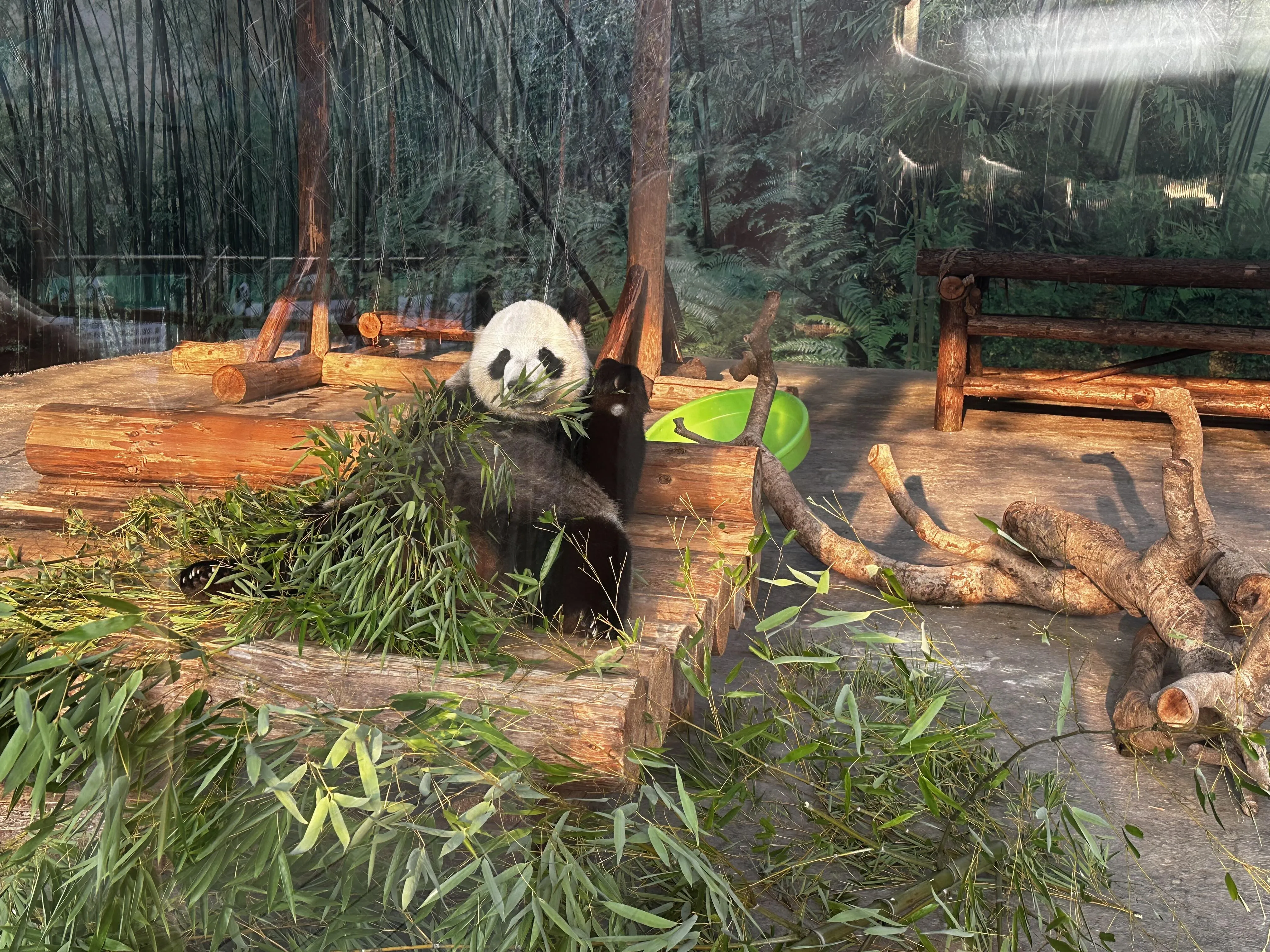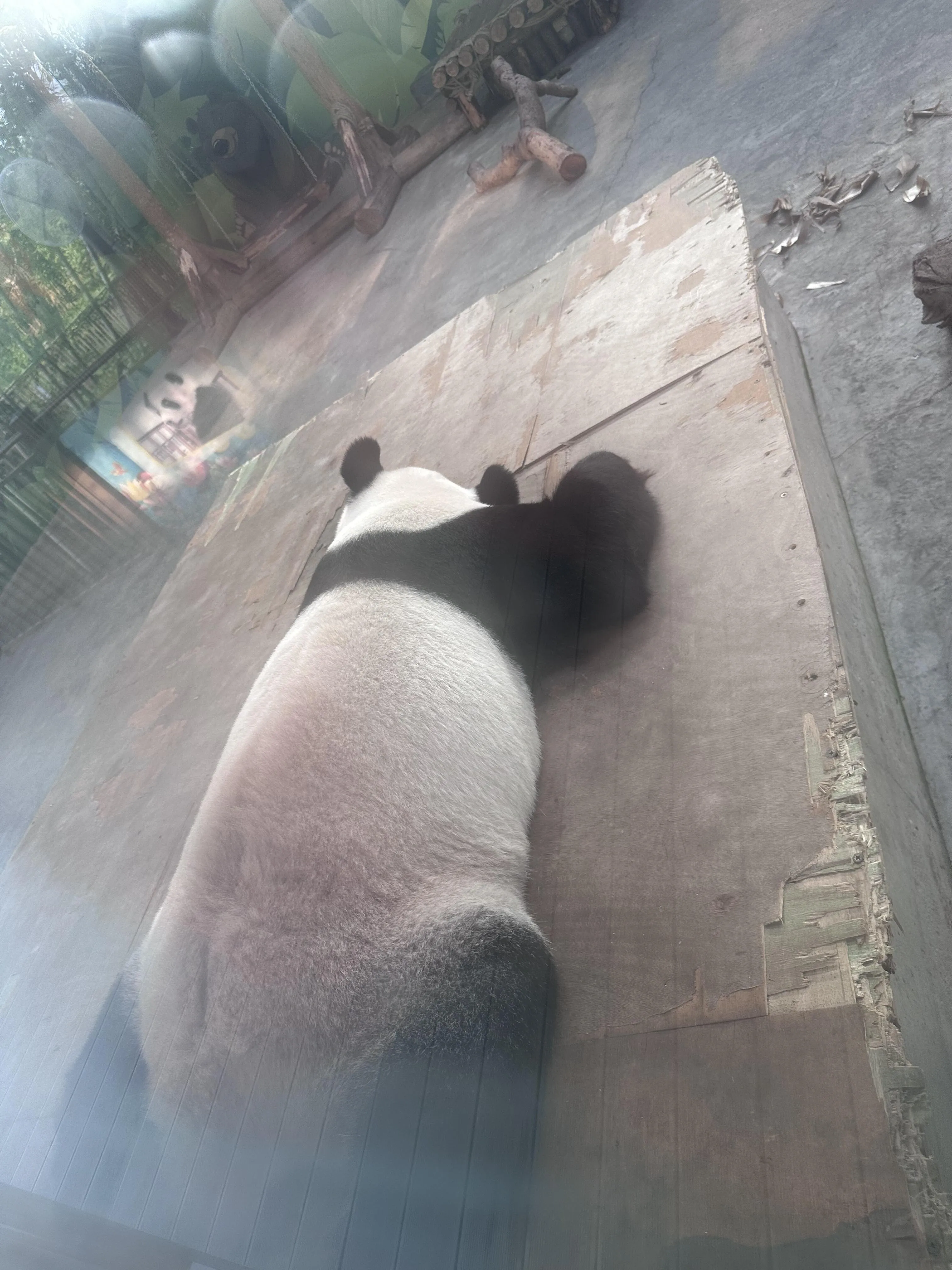 值得一提的是,熊猫在暑期不会出现在外场,外场院内已经荒草丛生,估计有三四个月没有熊猫出来活动了。馆内的保安配比为1:2(即一名保安负责看护两只熊猫),但没有看到饲养员在场巡视。