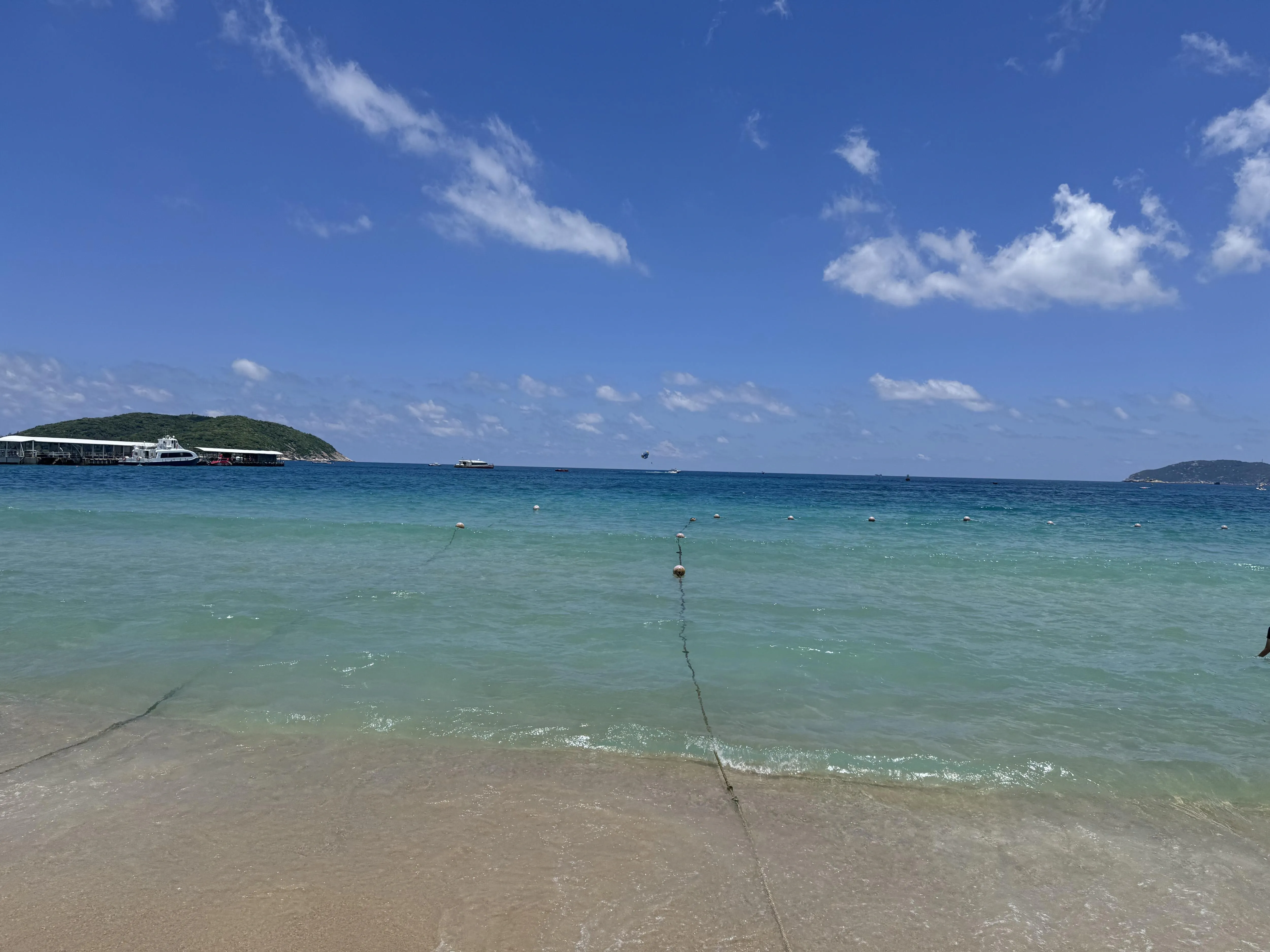太阳湾堪称“果冻海”,美得难以用言语形容。海水清澈见底,岸边就有成群的鱼儿游弋。孩子们在水中追逐小鱼群,欢乐无比。太阳湾的沙子是最细软的,踩水一点不硌脚,给人极佳的体验。