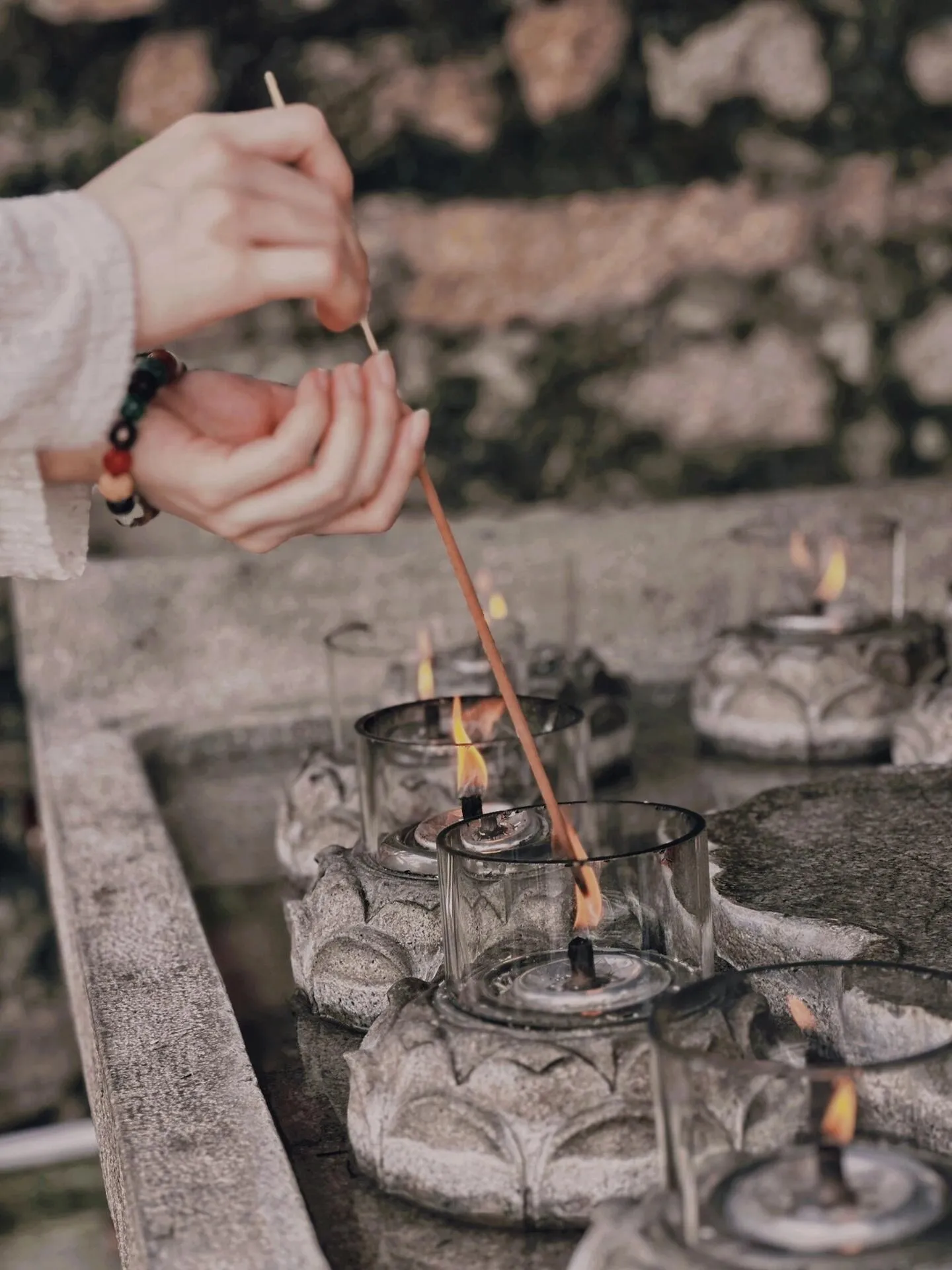 点香:点燃后不要吹灭。