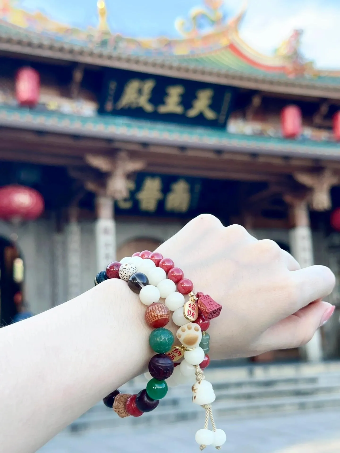 手串:寺内的手串都是开过光的。猫爪手串在面向天王殿左手边的邮局有售。如果想现场开光,可以询问师傅。