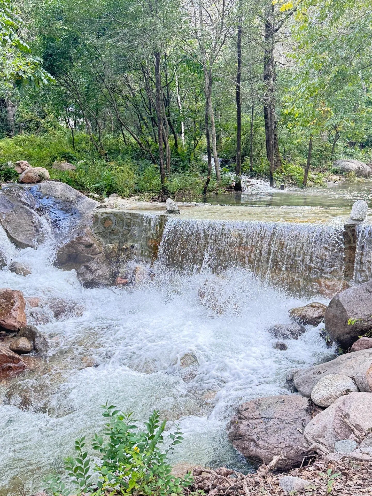 玉渡山虽然只是2A级景区,但风景优美,非常值得一游。这里主要有三个可玩的部分:忘忧湖游船、高山草甸露营和溯溪合宜瀑布徒步。