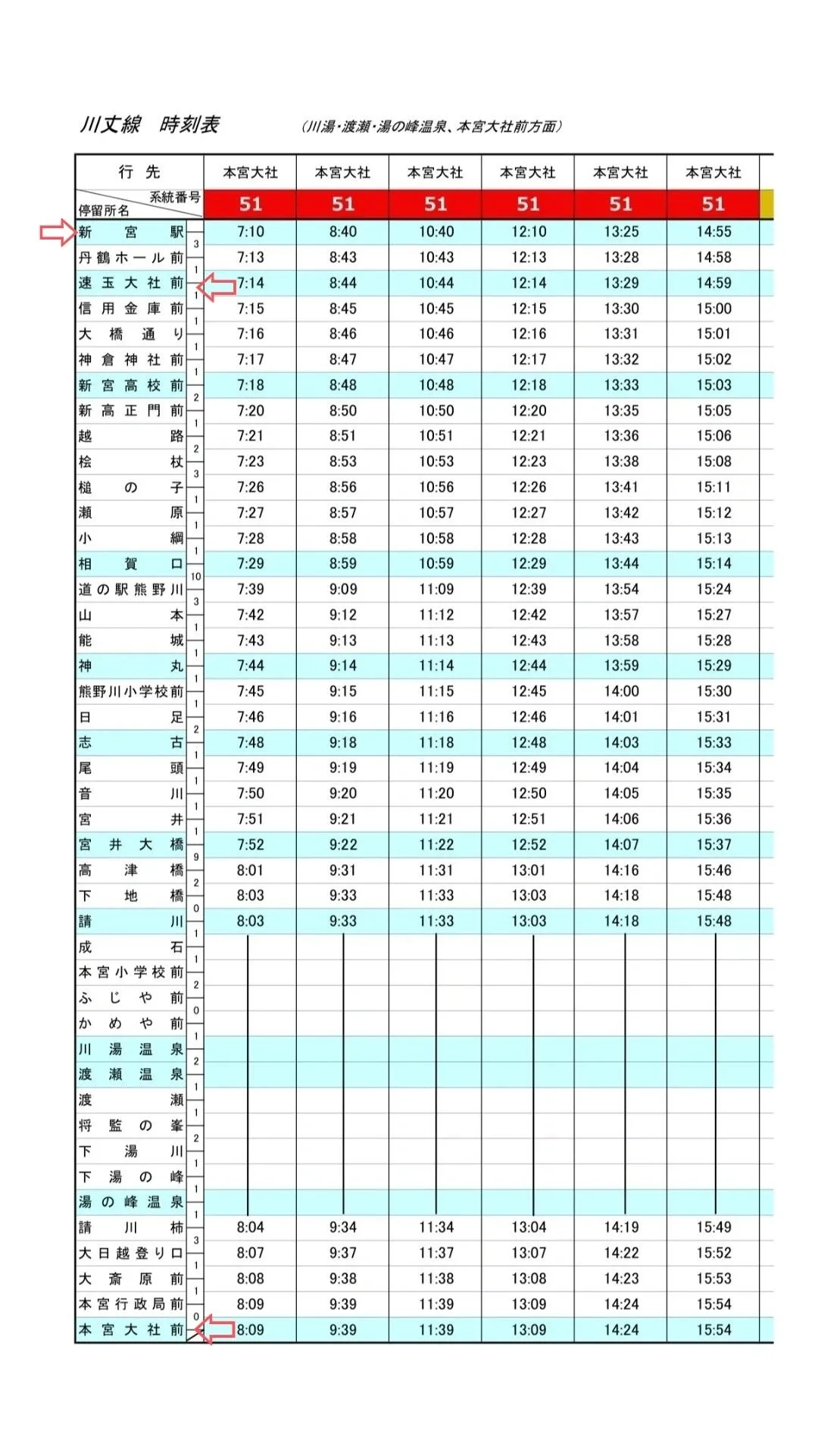 51路:从新宫站总站到本宫大社前总站,车程约一小时。回程可在速玉大社前下车,步行回新宫站。