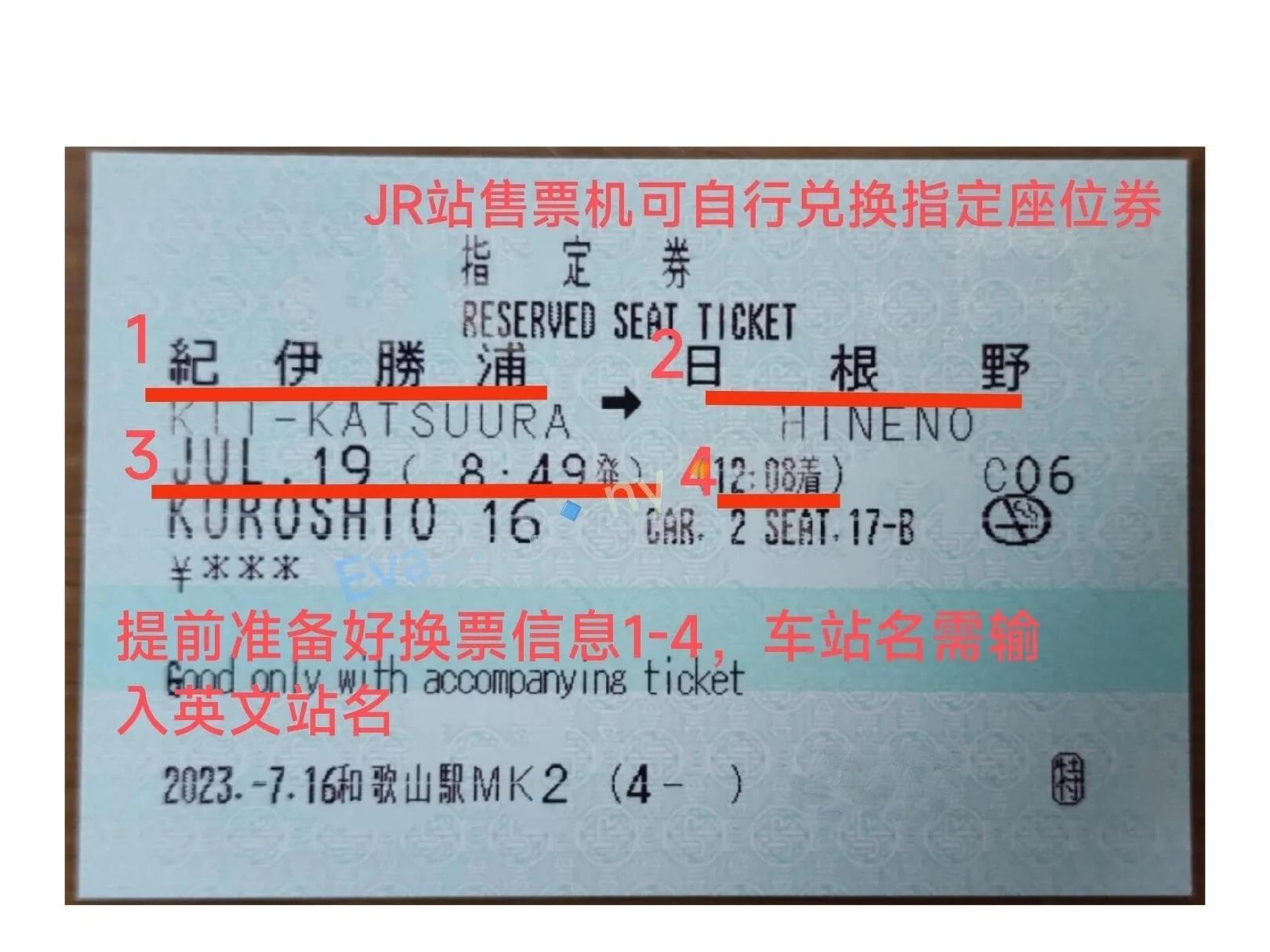 全列指定席,周游券只能兑换4次指定席,也就是说只能乘坐4次黑潮特急列车。其他行程可以乘坐JR普通列车如纪之国线,这些慢车没有指定席。