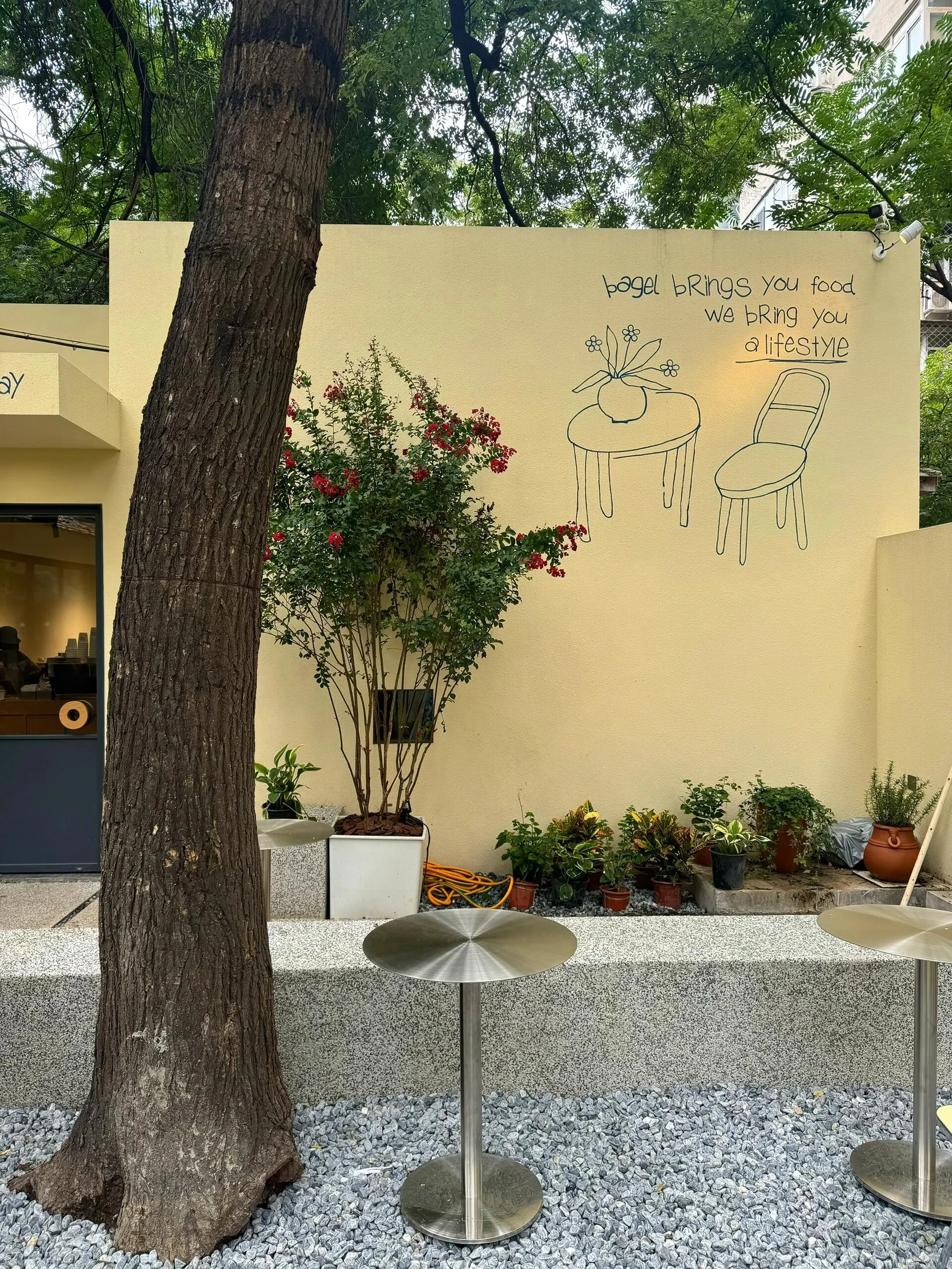 少见的韩风社区贝果店,主打开放式贝果。奶白色的门头很吸睛,店内还有一个宽敞的小院。