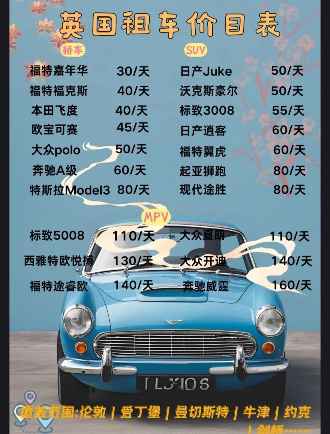 总的来说,在英国租车需要提前做好功课,比较不同公司的价格和条款,并注意保险和押金等细节。这样不仅可以节省开支,还能让自驾游更加顺利愉快。