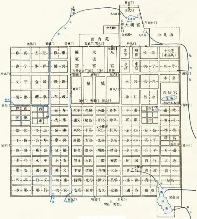 唐长安城的太极宫和大明宫,以及洛阳城的皇宫,规制完全一样,沿南北中轴线排列,分为外廷和内廷。