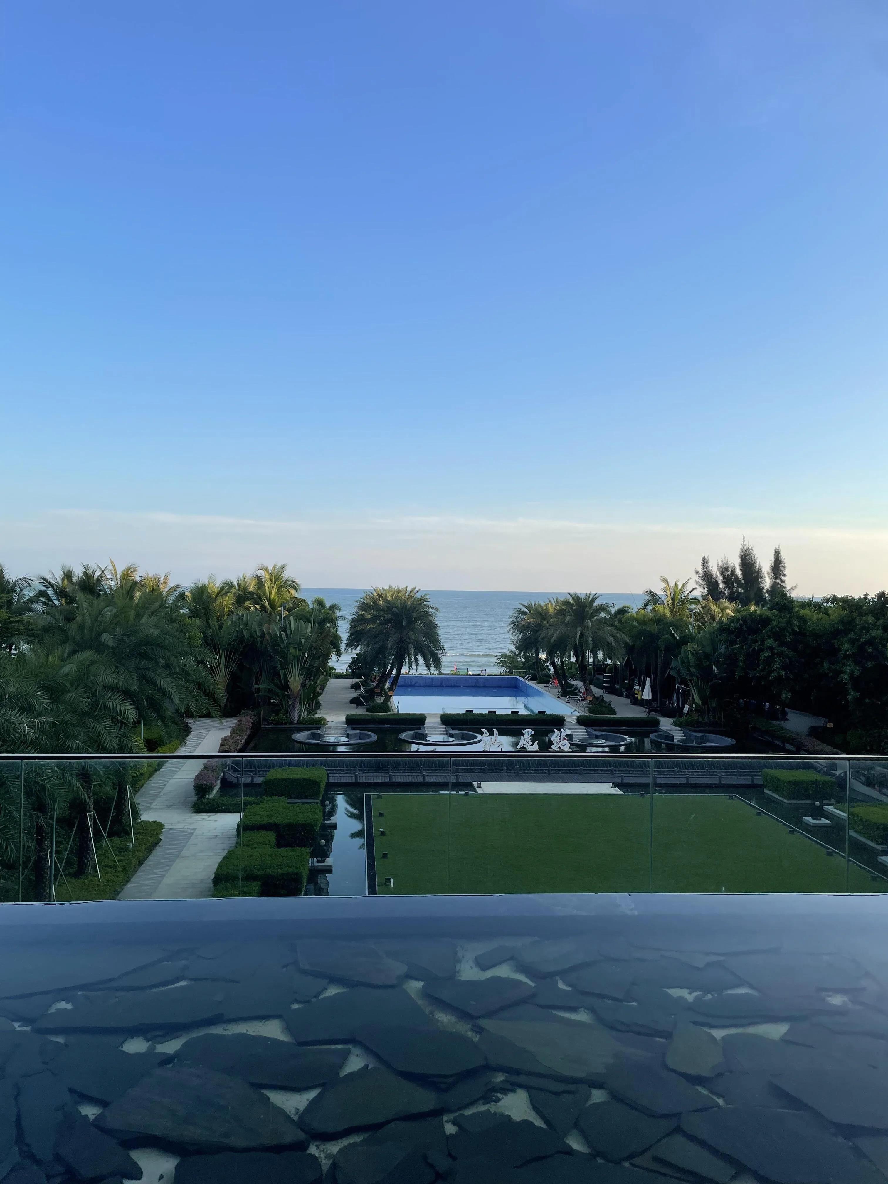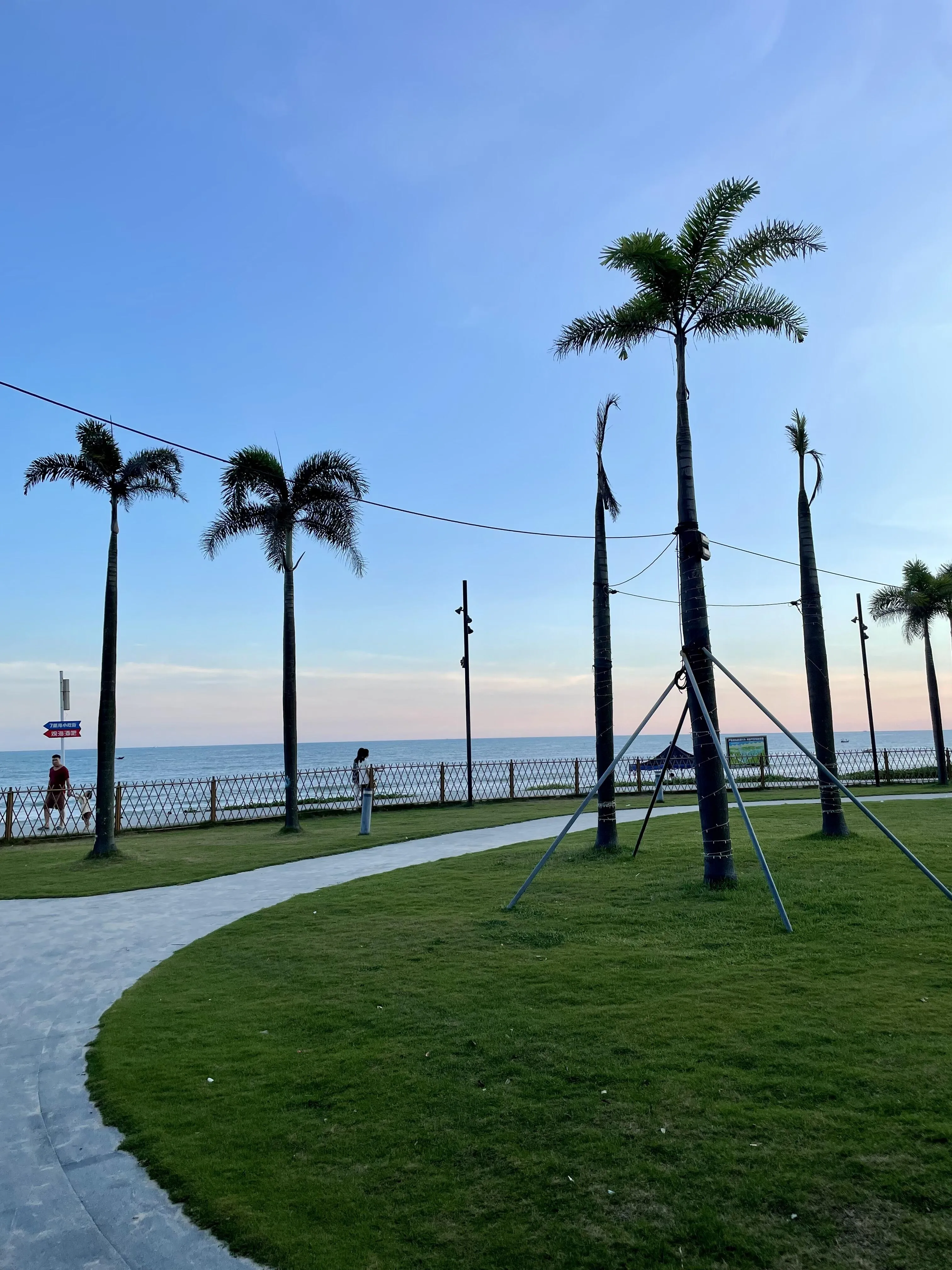 酒店周边的海边绿道是一大亮点,特别适合推婴儿车散步。傍晚时分,一家人漫步在绿道上,迎着海风,欣赏粉色的海天一色,感受宁静惬意的美好时光。