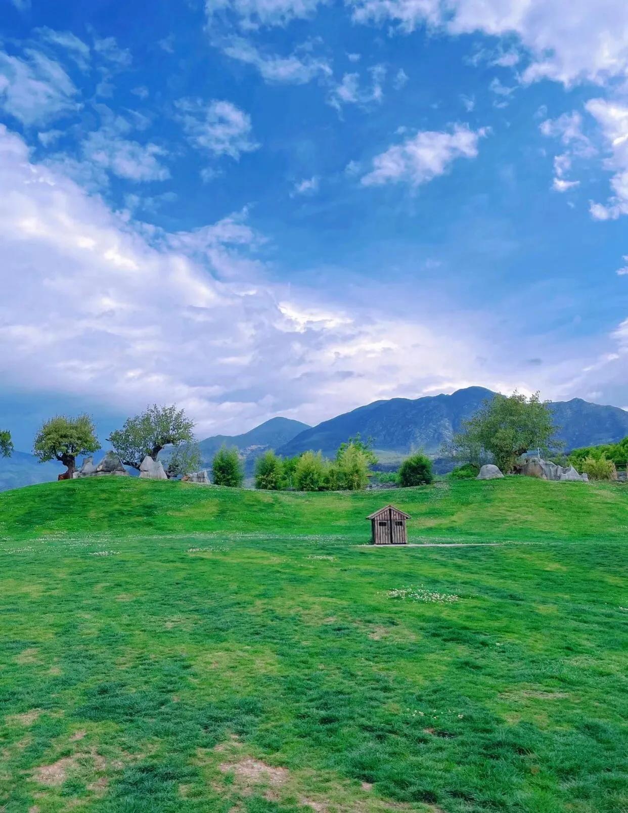 喝完茶后有车接送去游湖,可以打卡“天空之境”。建议自带红色长裙拍照,效果会很好。也可以选择99元请摄影师拍照,或199元租衣服拍照。这里有大片绿油油的草原,山水草马尽收眼底,适合自驾游客慢慢游览感受。