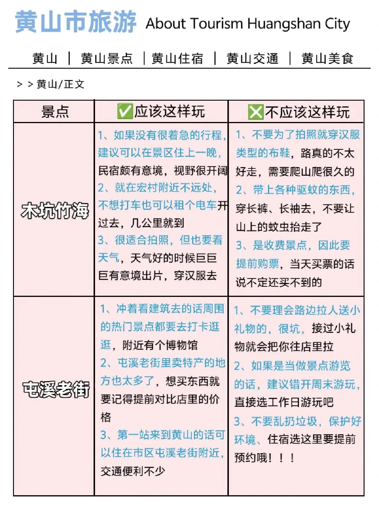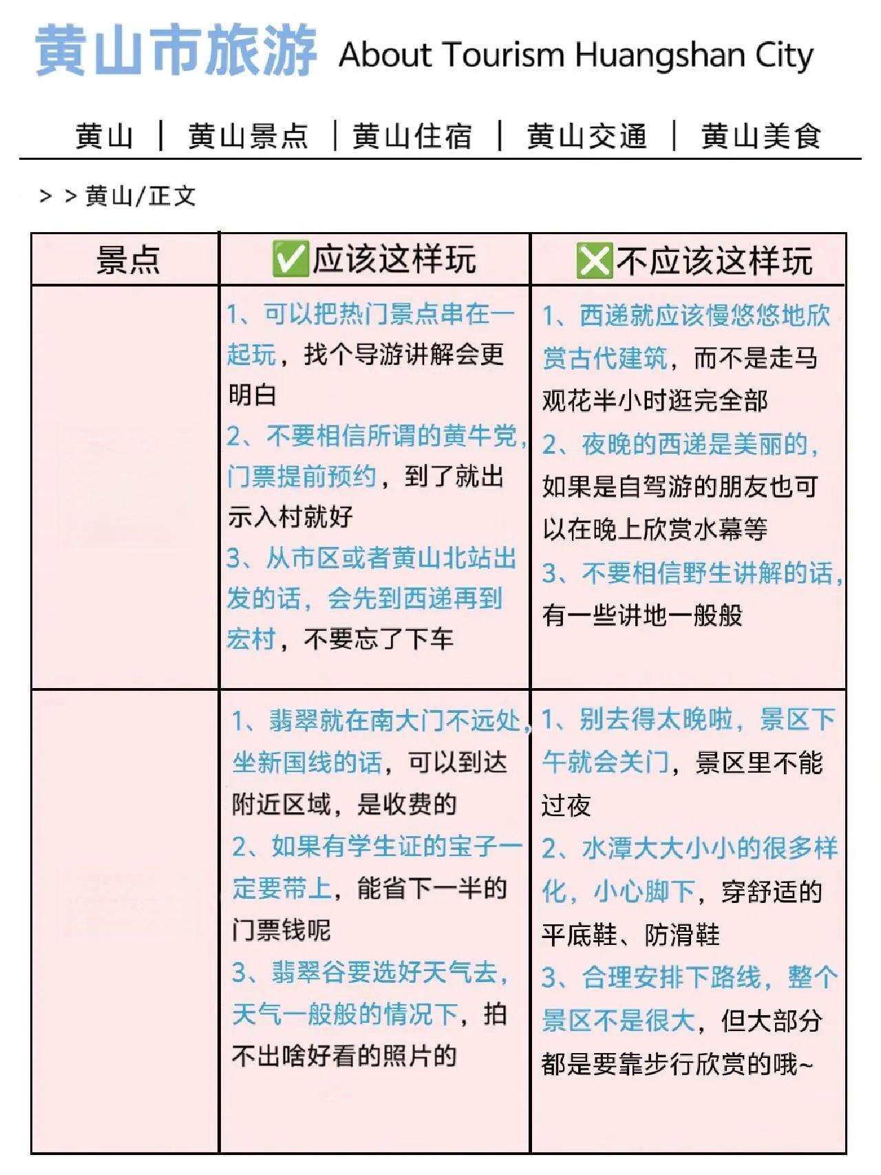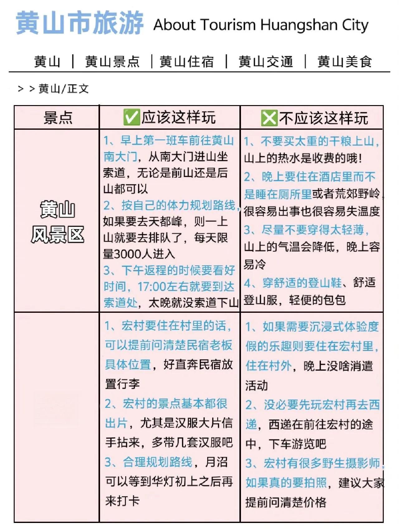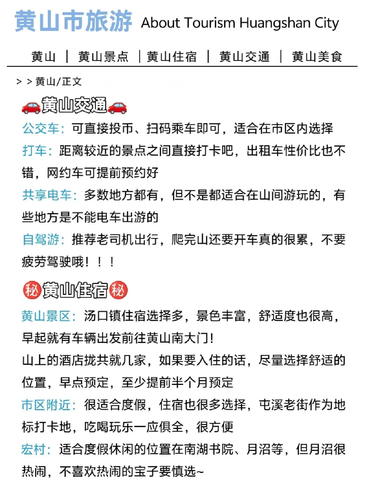 黄山旅游通知📢 送给即将去黄山的姐妹们