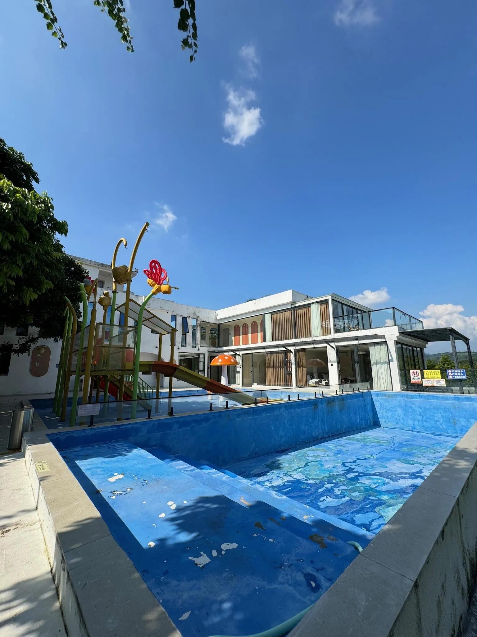 庭院花园是另一个亮点,设有泳池可供玩水嬉戏 ,还可以在庭院里进行烧烤和围炉煮茶活动。水上乐园则设有激情大水桶和滑梯,非常适合小朋友玩耍。
