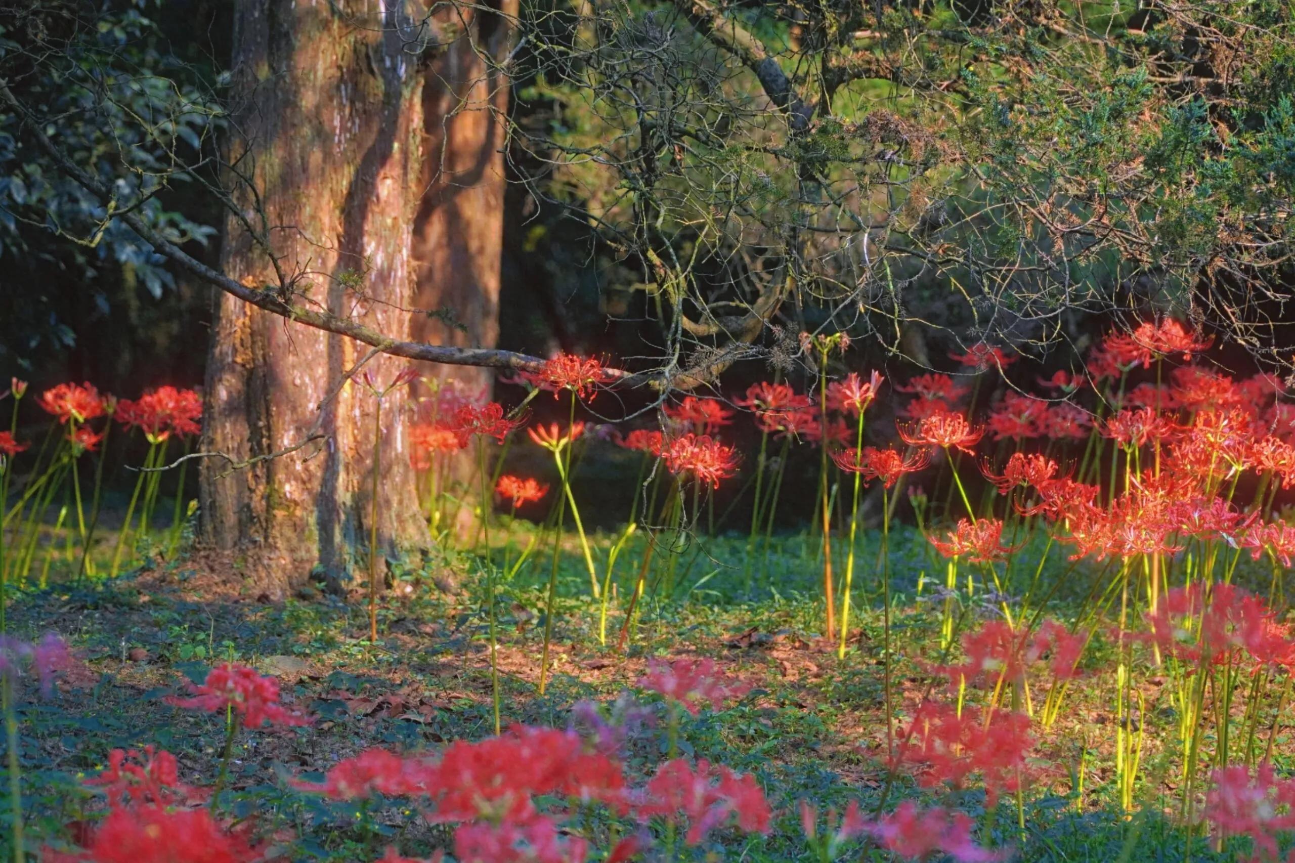 拍摄时间最佳为下午三点后,光线更加柔和。 尤其是四点左右,夕阳洒在彼岸花丛中,营造出非常唯美的氛围。