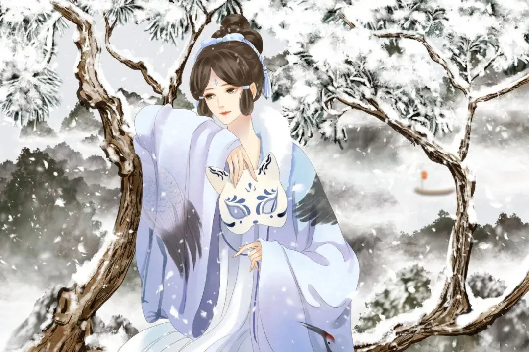 隔水度仙妃,清绝雪争飞。
