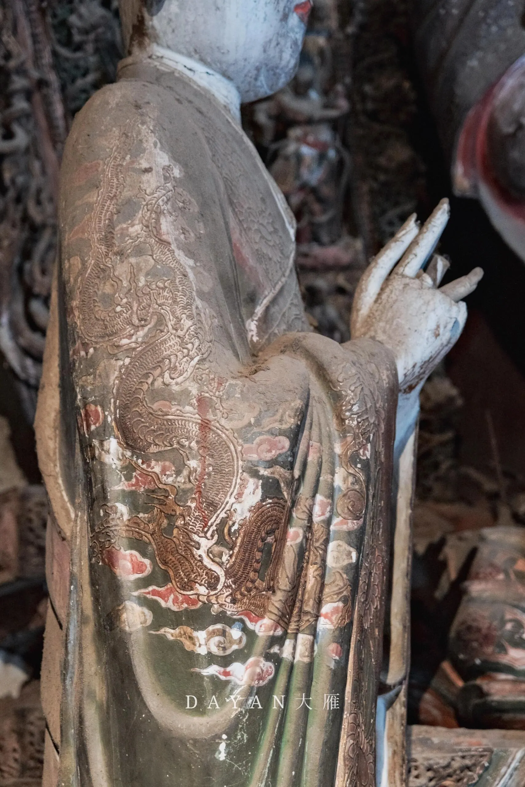 水陆庵的大殿虽然面积不大,约二十平方米左右,但里面的彩塑和壁画却令人叹为观止。拍摄时,我建议使用大光圈和高感光度,因为殿内光线较暗。昨天去时只开了部分灯,比起去年夏天我第一次来时要暗一些。如果遇到阴天,拍摄难度会更大。不过只要调整好参数,再加上后期处理,还是能拍出不错的效果。