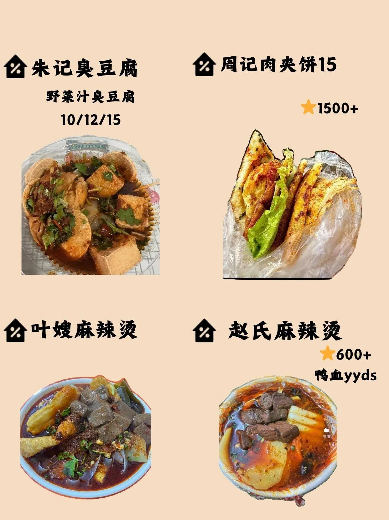 朱记臭豆腐和新疆赞达目烤包子都值得一试。