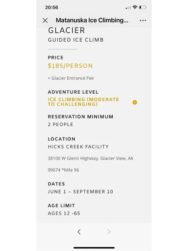 价格方面,每人需要支付185美元的tour费用,加上35美元的冰川入场费,以及20-25美元左右的小费(现金)。整个行程大约5小时。