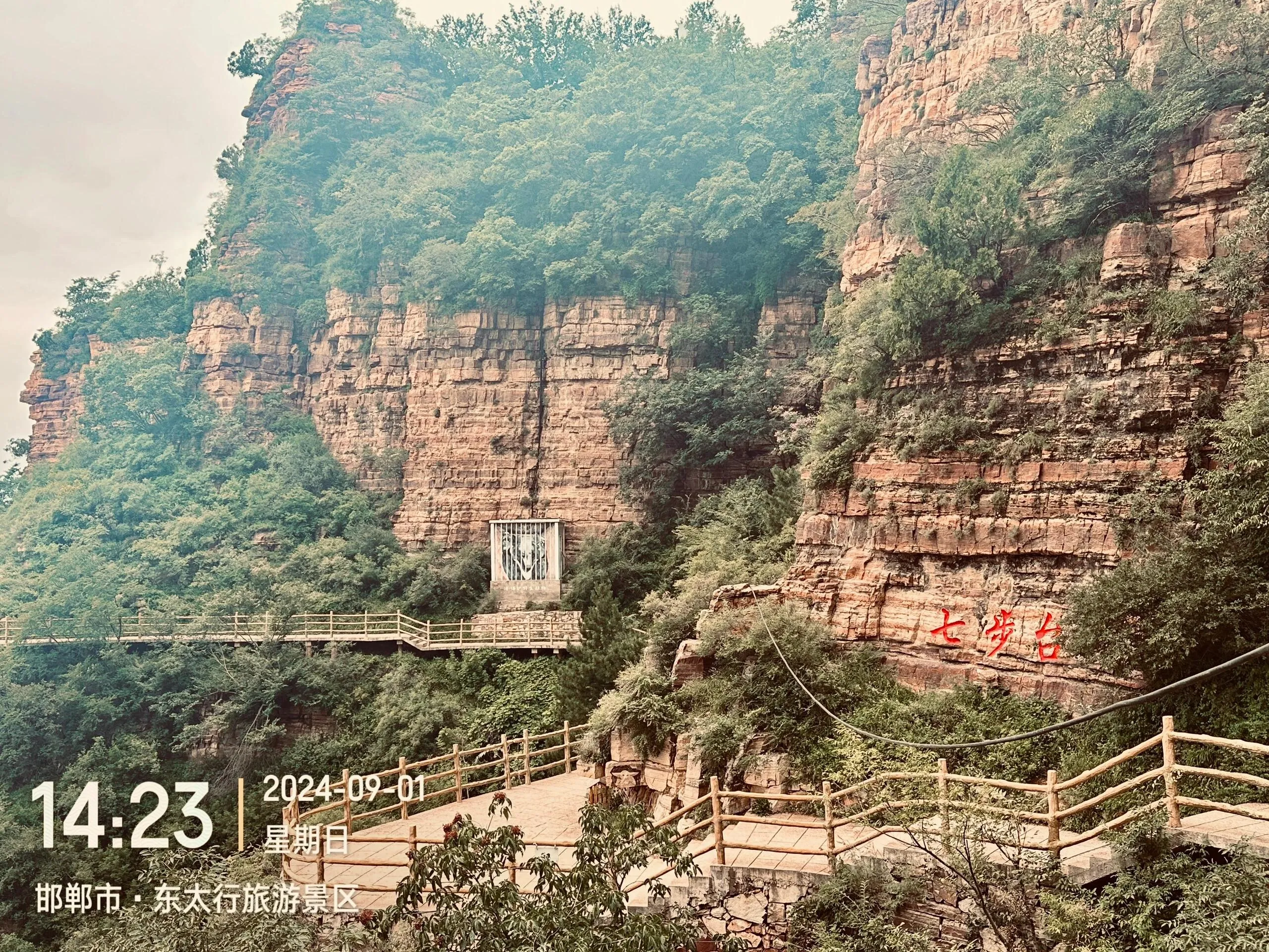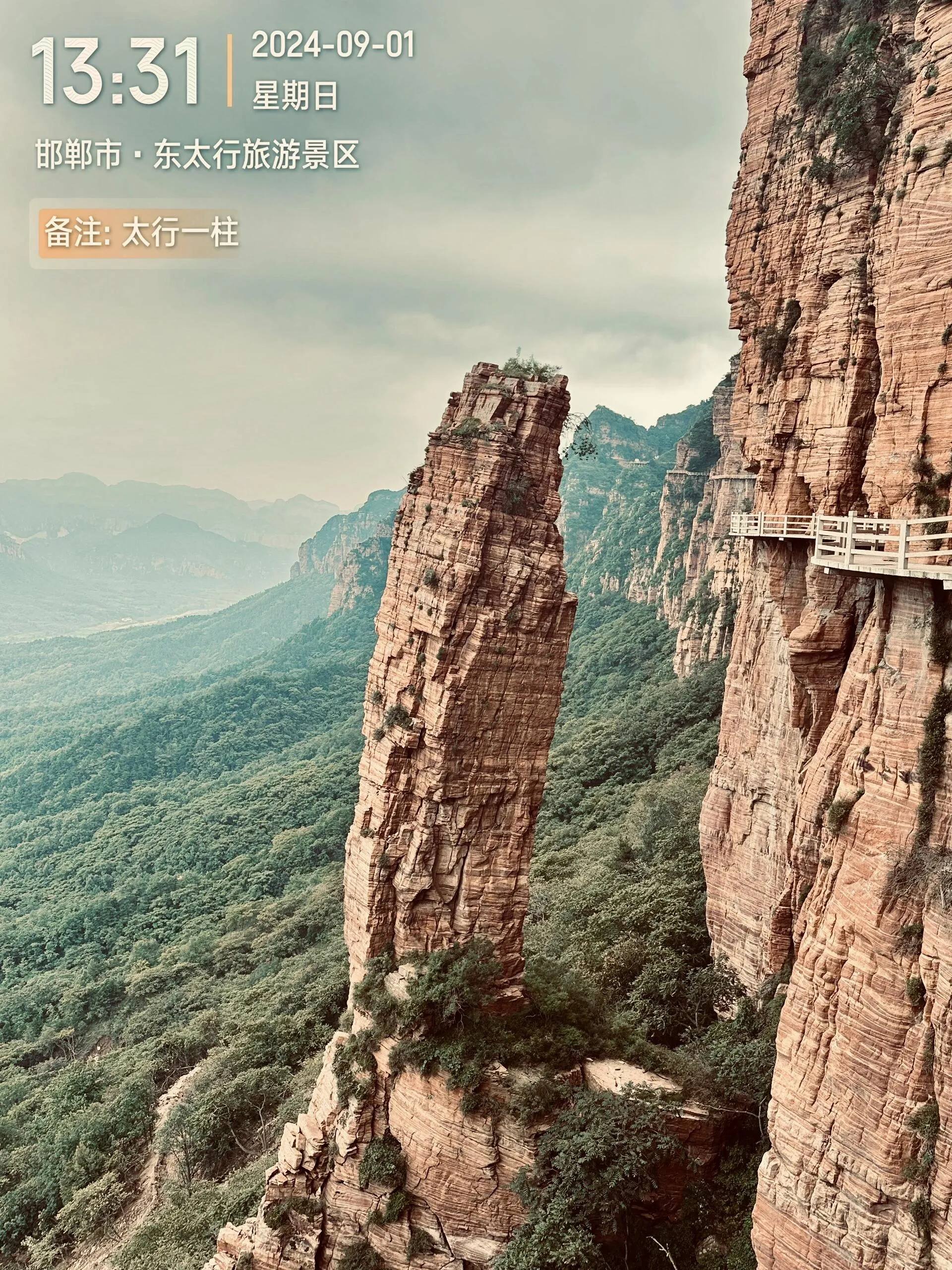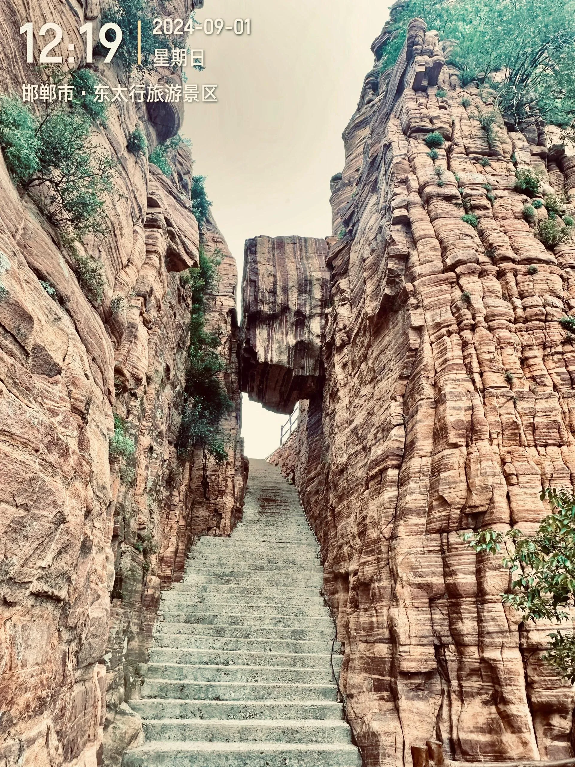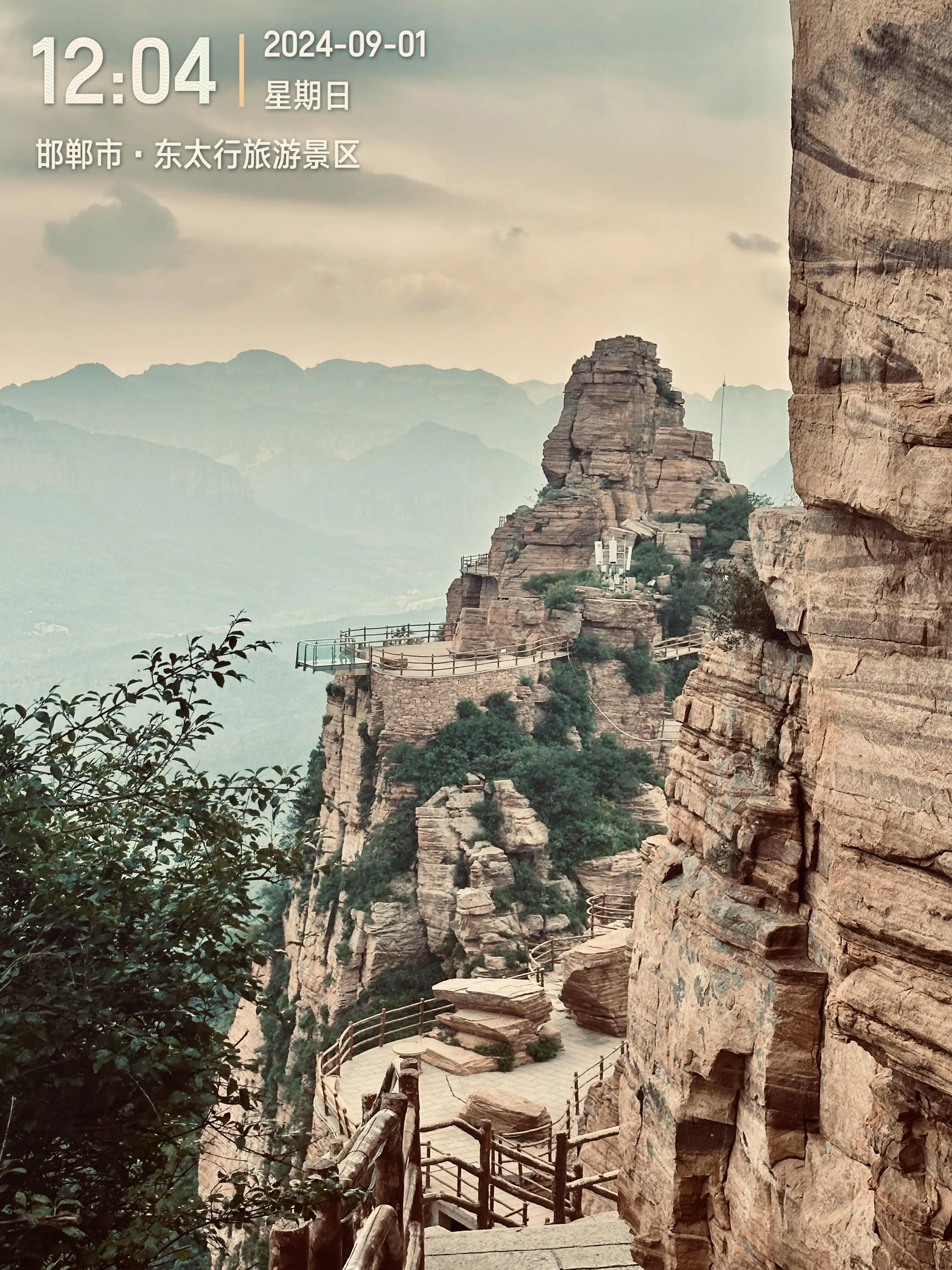 东太行景区位于太行山东麓,是一处值得专门前往的自然景观。景区最高处海拔达1428米,与美国科罗拉多大峡谷同属丹霞地貌,山景极具特色。尽管海拔较高,但由于攀爬路线多为围绕山体的平台和楼梯,难度适中,适合各年龄段游客。