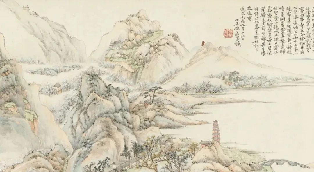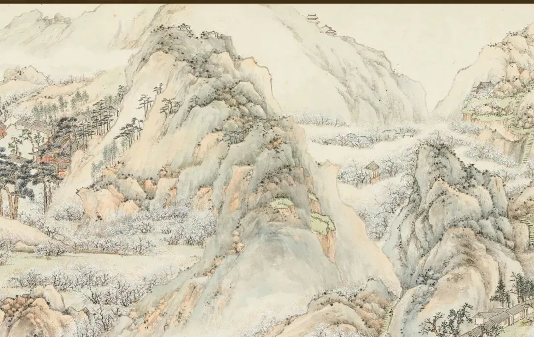 孙均游览邓尉山后,将其广阔壮丽的景色尽收图中,画卷中清新淡雅的色彩和细致入微的笔触让人叹为观止。