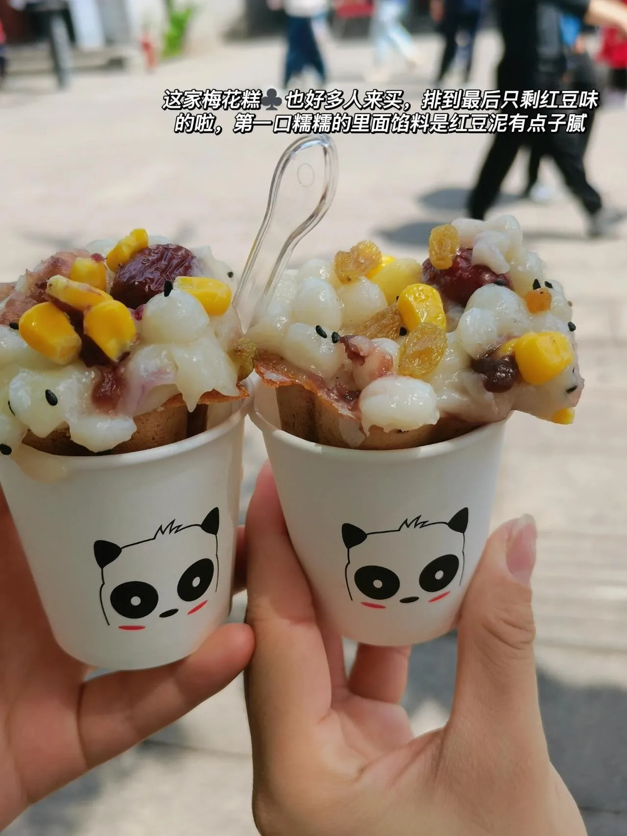 梅花糕6元/个,糯糯甜甜,有红豆、香蕉、紫薯等口味。