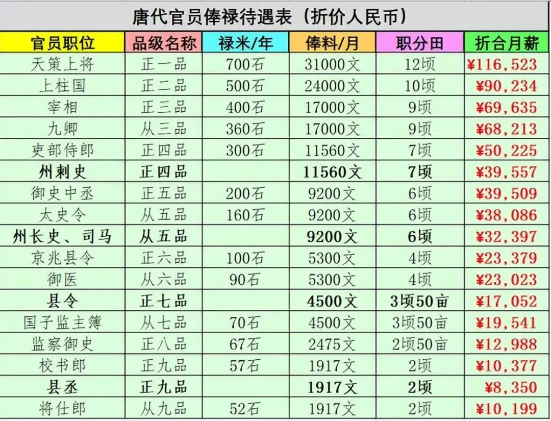 唐代的俸禄设置比较均衡