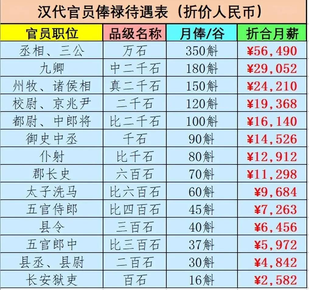 这些都按照当时朝代的中期生产力、赋税制度、度量衡和物价水平,统一折算成大米,然后依据当下的大米价格(每公斤5.38元)来换算成人民币的月薪。