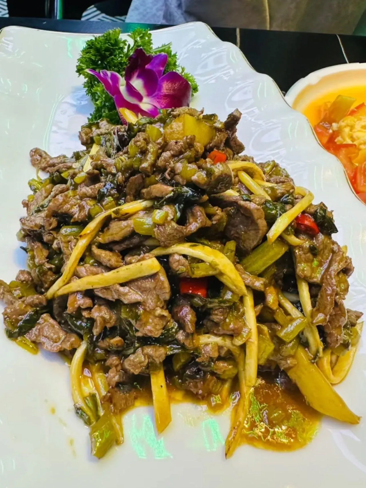 晚餐在老李家土菜馆解决。这家店很多人推荐,环境真的很不错。店里的柿子树很适合拍照打卡。菜的味道总体也不错,最喜欢雪菜牛肉丝,超级下饭,牛肉也没什么筋。价格实惠,分量也挺多的。