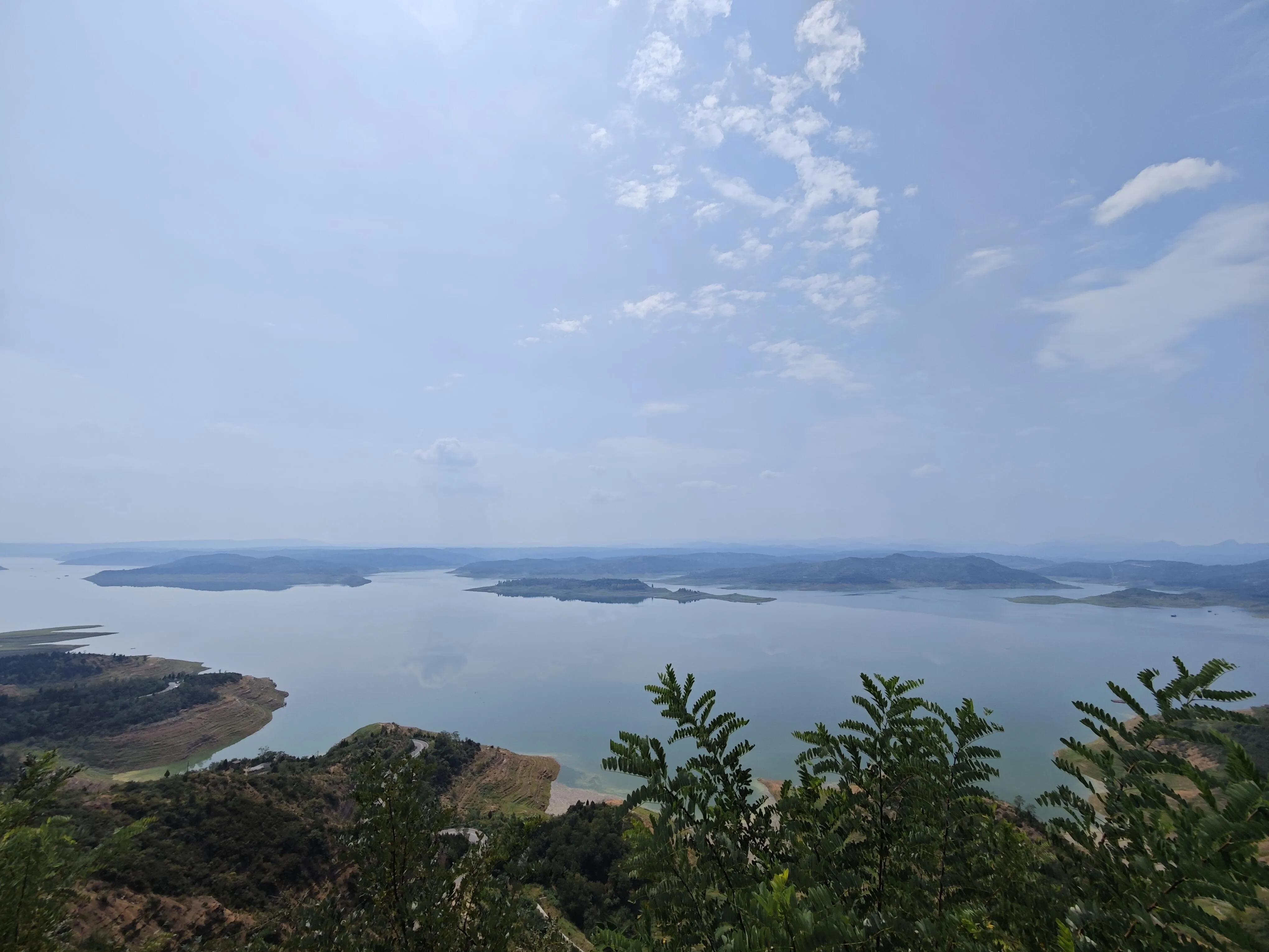 用餐后,骑行队伍开始向鹰嘴山进发。从羊肉汤店到山顶大约35公里,山路好走,只是天气炎热。到达山顶后,每人畅饮两瓶菠萝啤,一边欣赏小浪底的美景。之后下山溜车一圈,踏上返回郑州的归途。