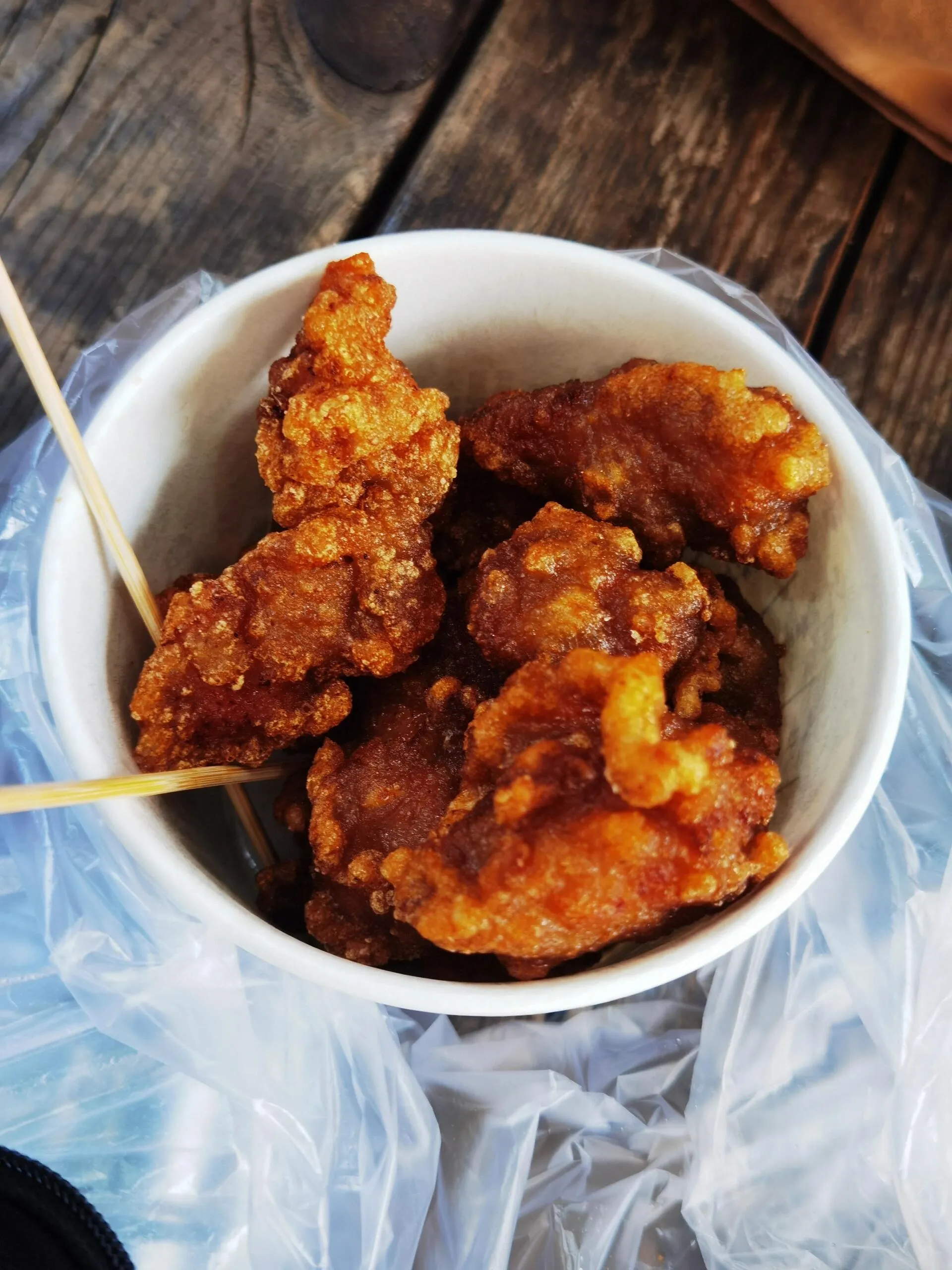 芋头饼是必尝美食,多家店铺的口味相近,都很美味。芋泥馅香浓可口,建议趁热食用。烧肉粽也值得一试,肉块分量十足。炸醋肉略带醋香,口感类似锅包肉。