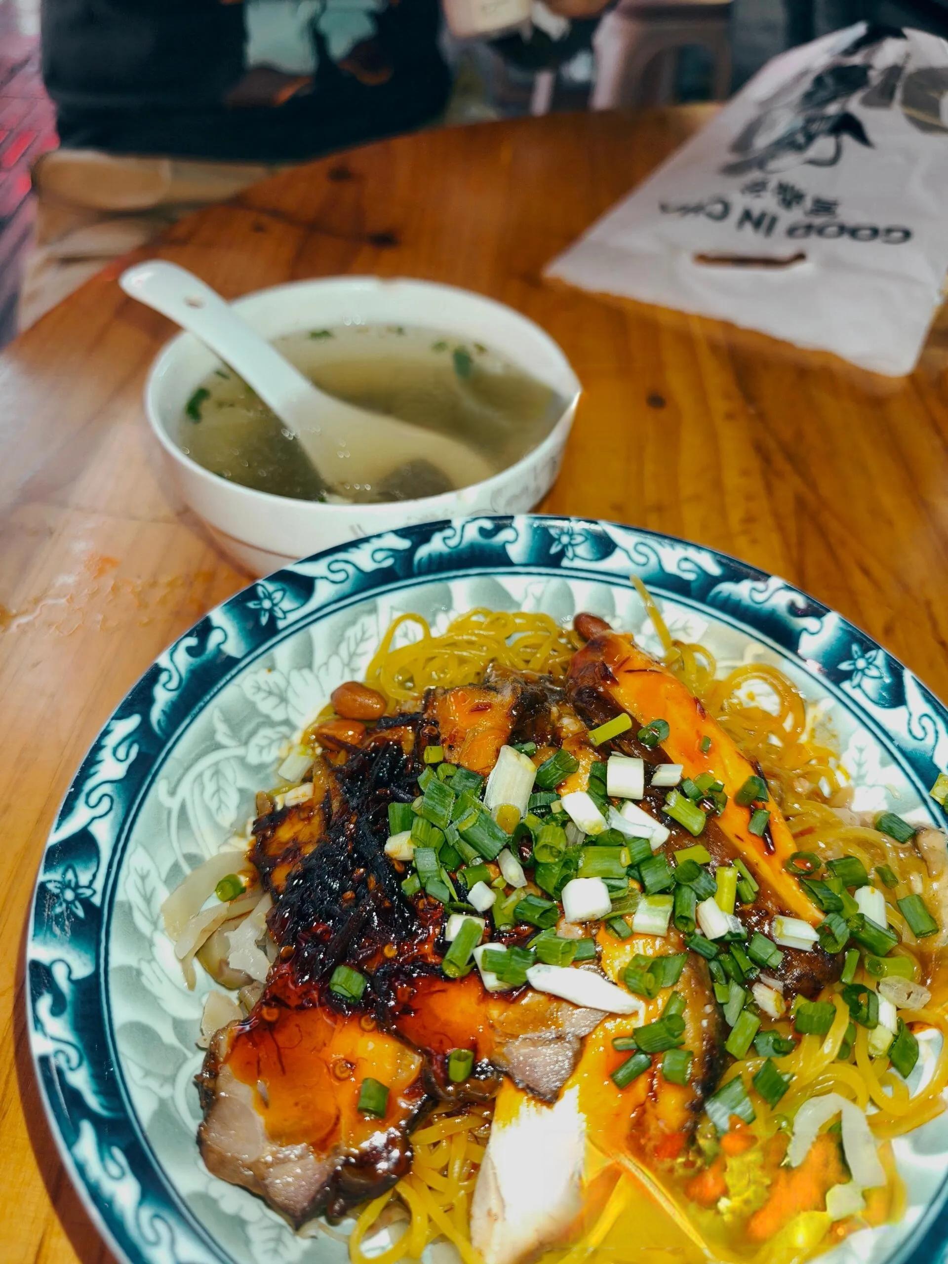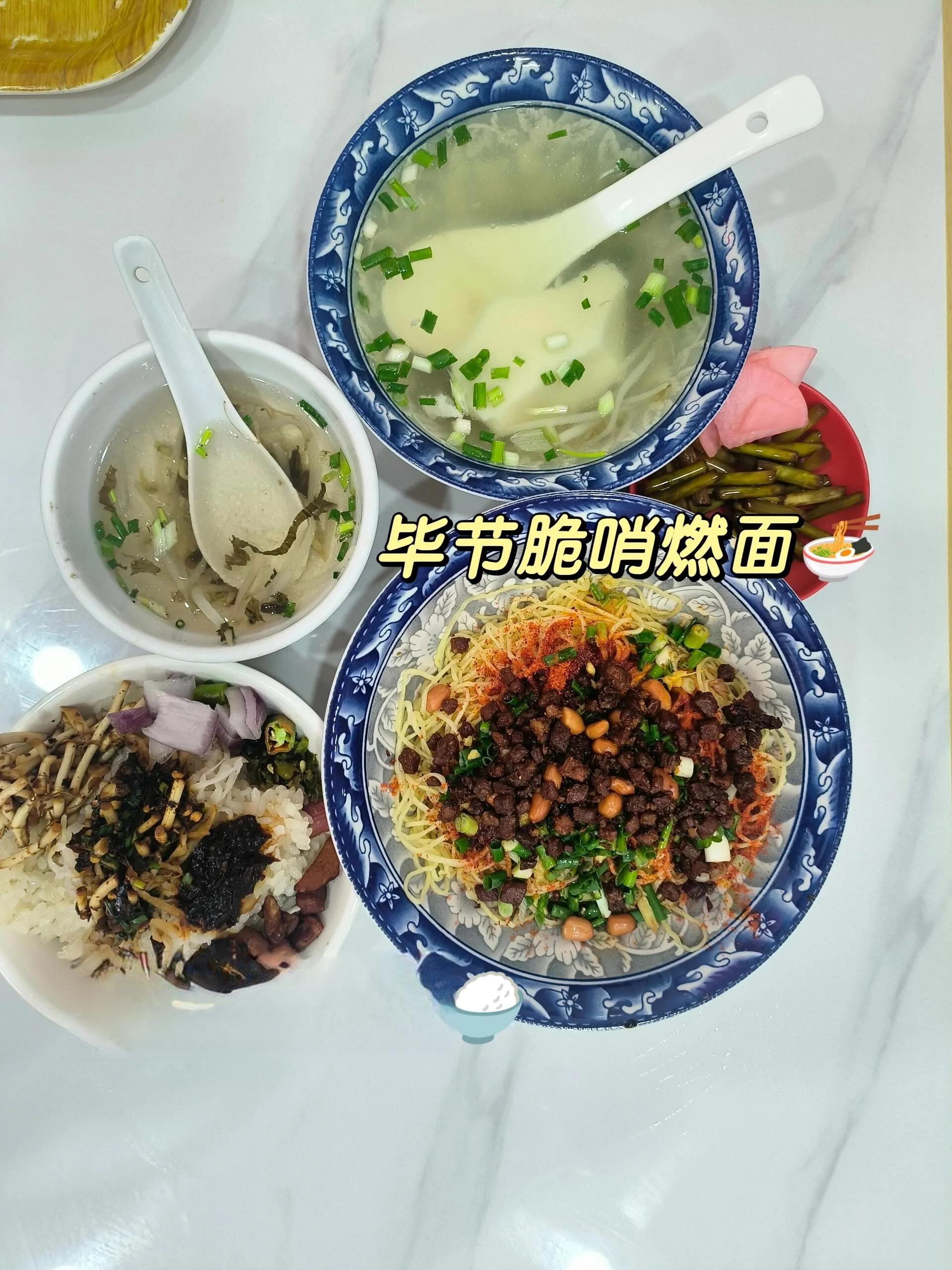 首先是体育路上的小勇干面,这是一种典型的贵州鸭蛋面。面条金黄硬韧,搭配红油干香和香菇粒干鸡块,口感丰富。同样在体育路上的毕节脆哨面则以细幼劲弹的面条和极度干香的脆哨著称,花生的加入更是点睛之笔。