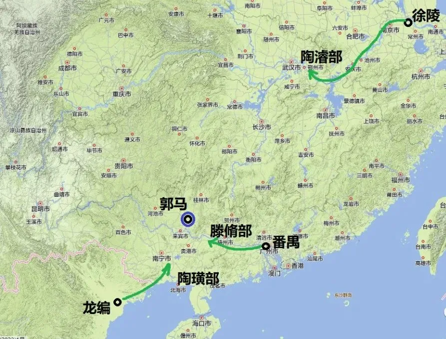 孙皓命滕脩为镇南将军、假节兼广州牧,率兵万人从东路进讨;陶璜统管交州及合浦、郁林二郡部队从西面进军,东西夹击,共讨郭马。