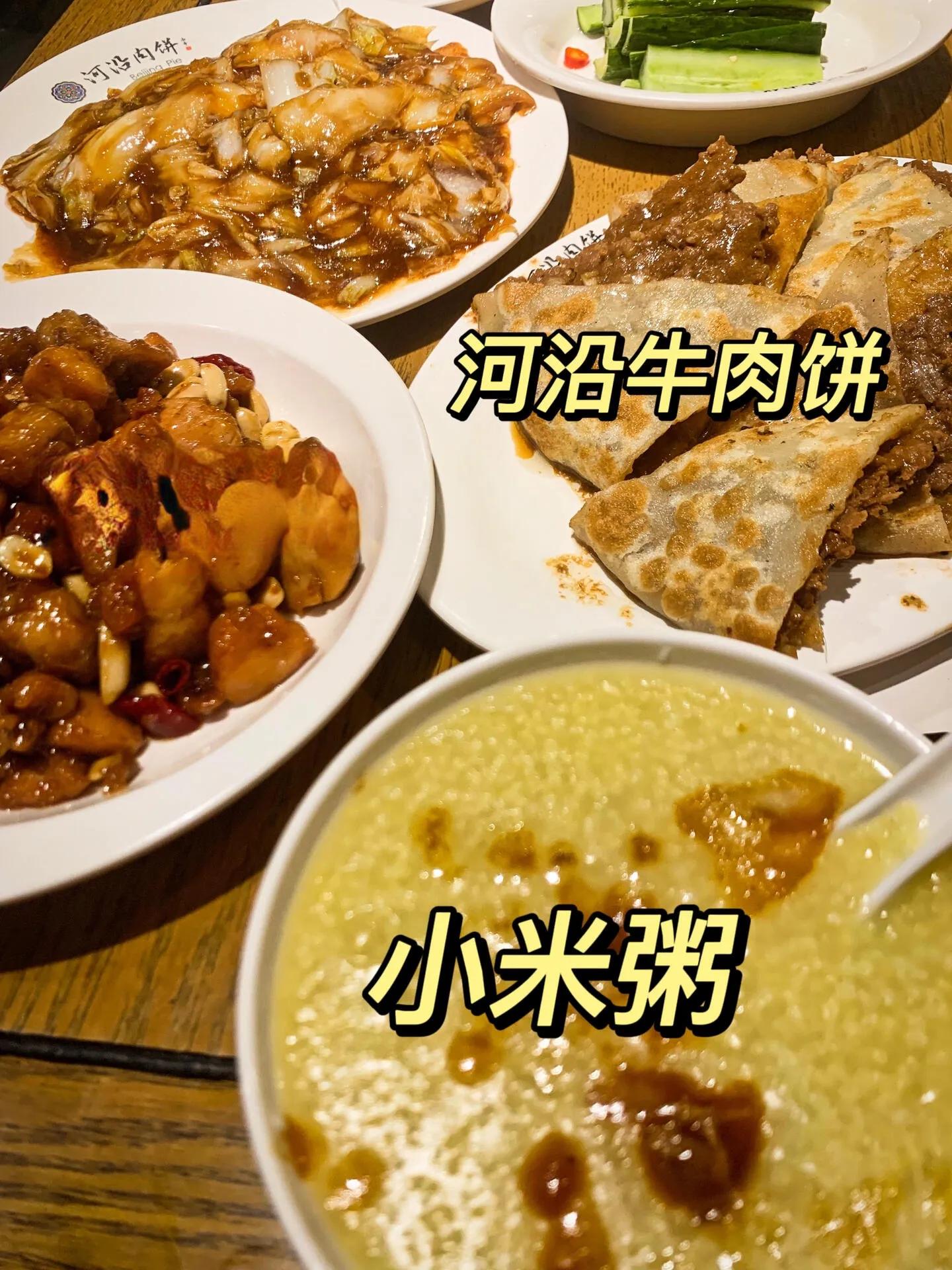 我在美团上点的套餐,适合2-3人分享。如果到店用餐也很划算,人均约60元就能吃饱。强烈推荐宫保鸡丁和河沿牛肉饼。