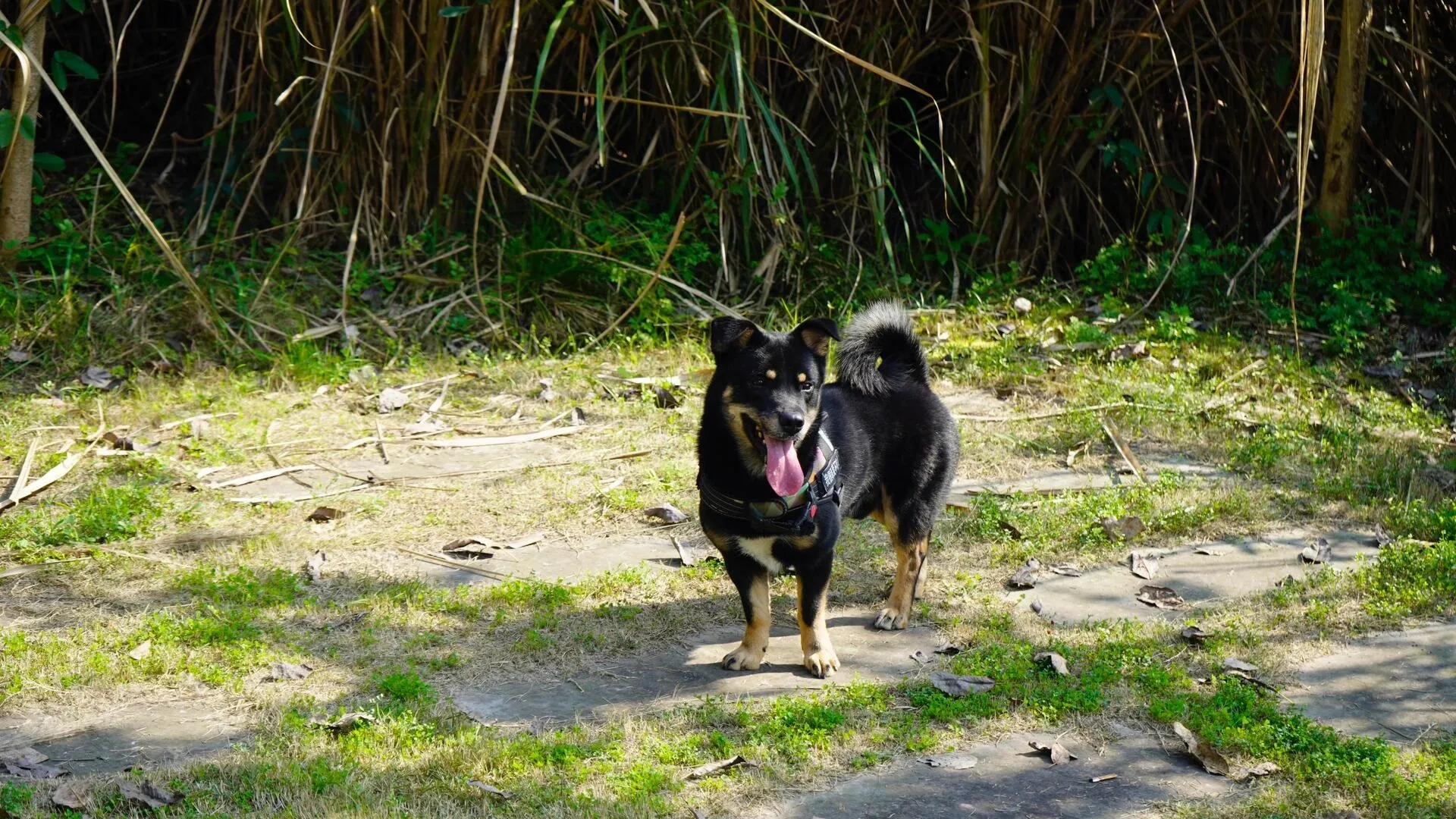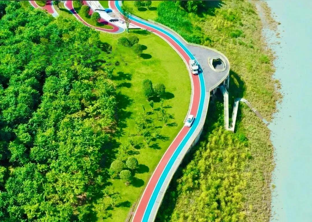 有停车场,公园面积大。往深处走有一大片竹林,人较少,可以让狗狗自由玩耍。还可以下到江边,与爱犬一起欣赏落日美景。