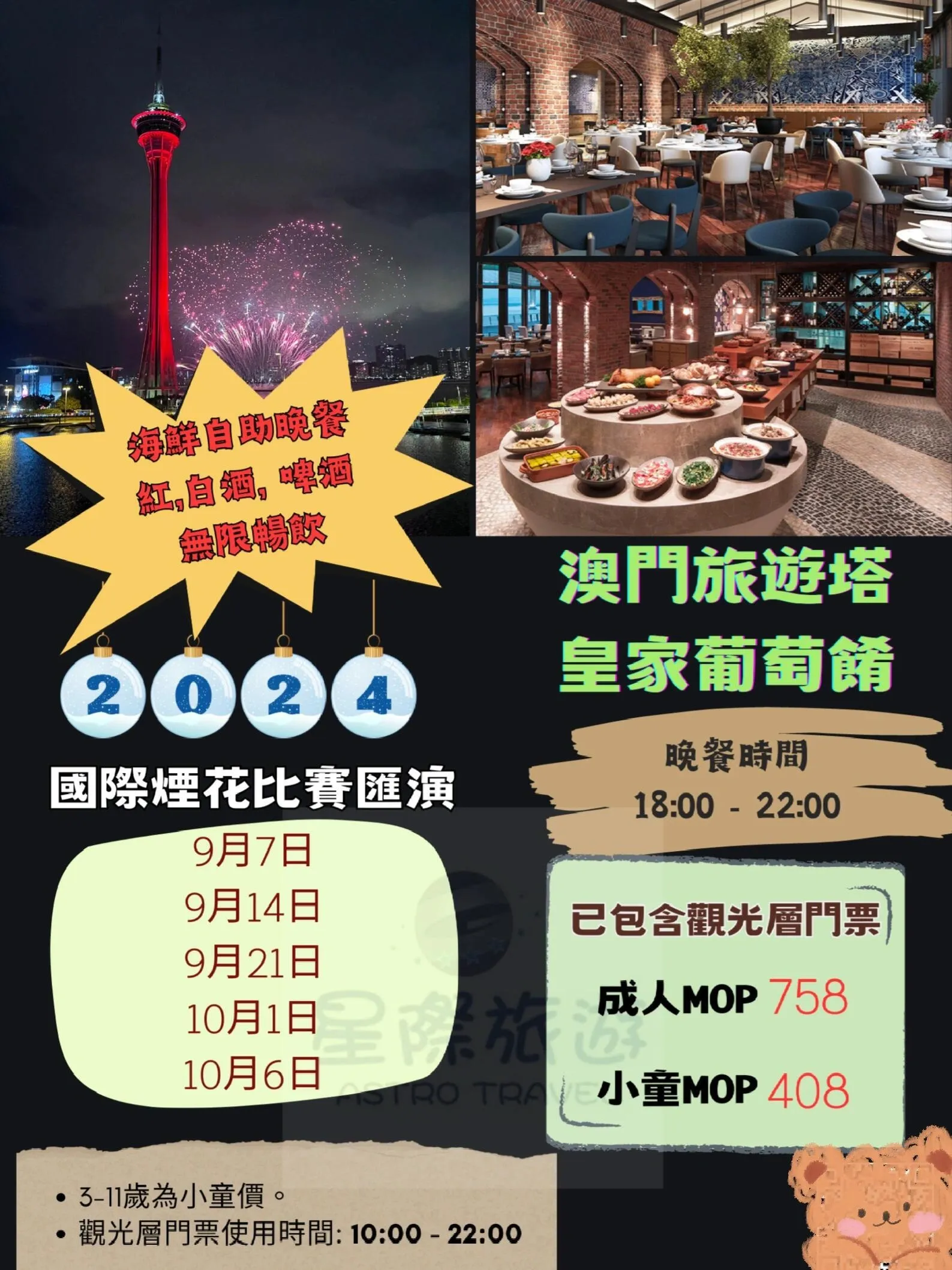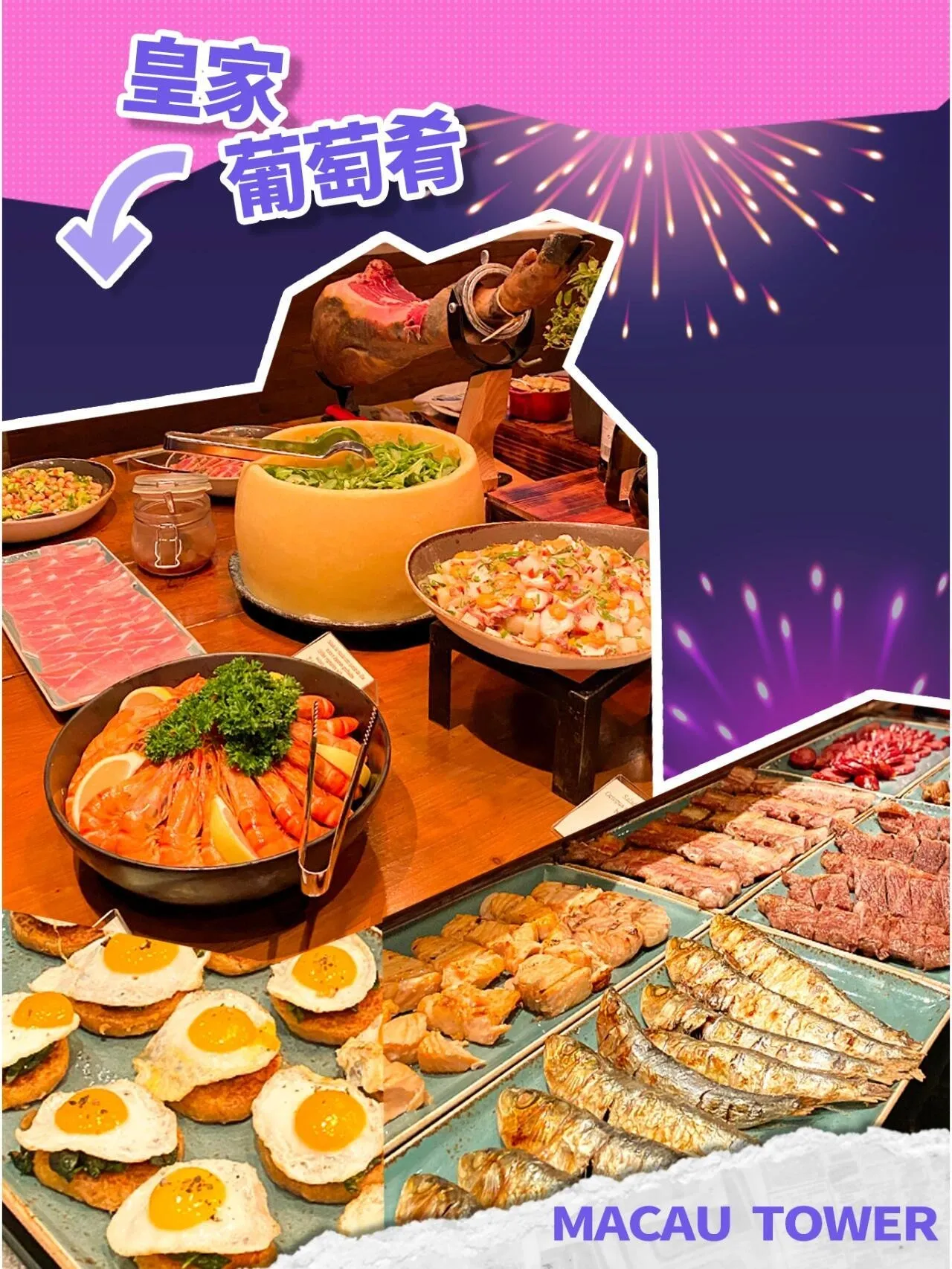 皇家葡萄肴餐厅以其浓郁的葡式家庭风格著称 ,为烟花节特别准备了海鲜自助餐及无限畅饮,为食客带来海陆珍馐盛宴。