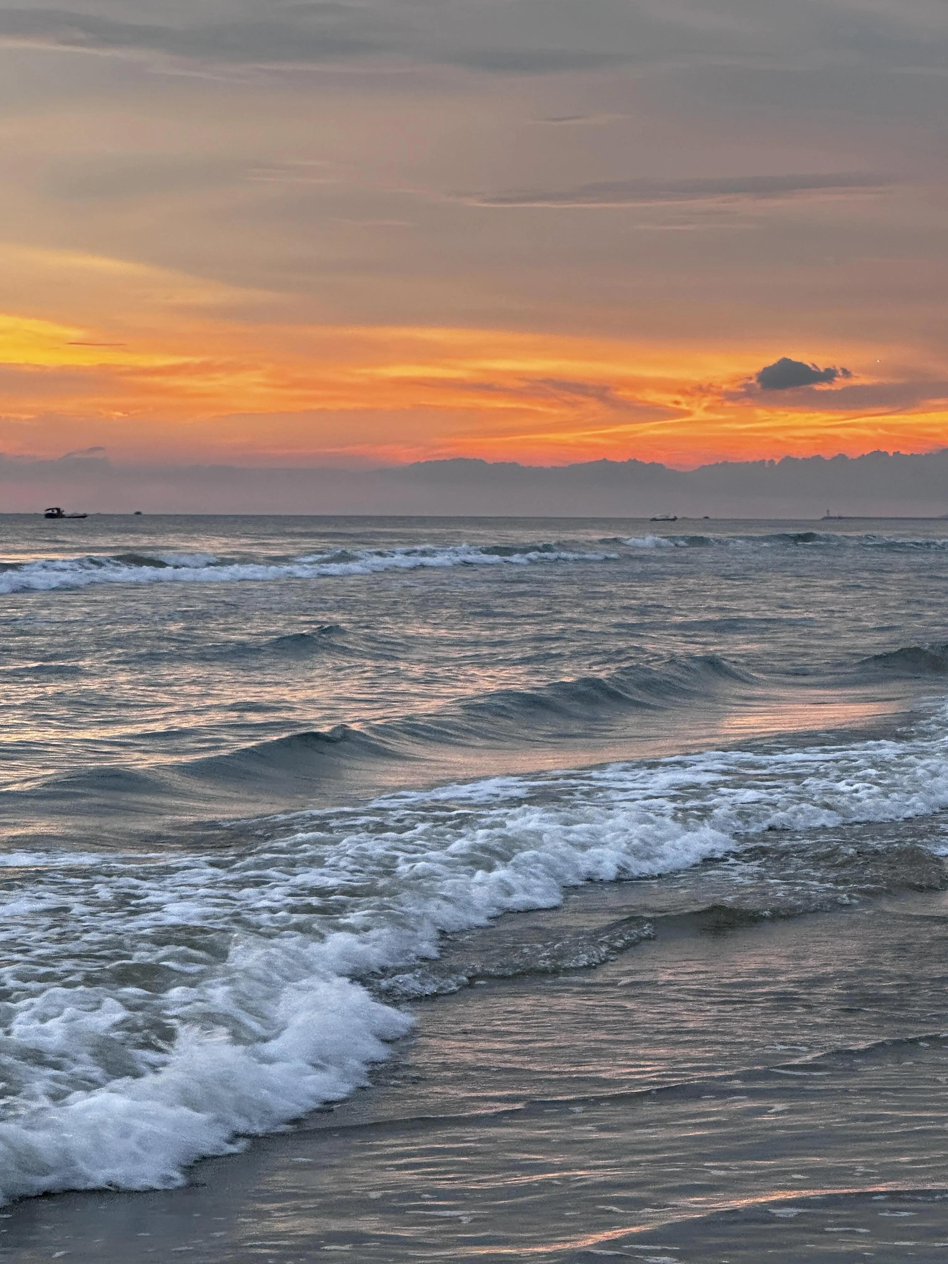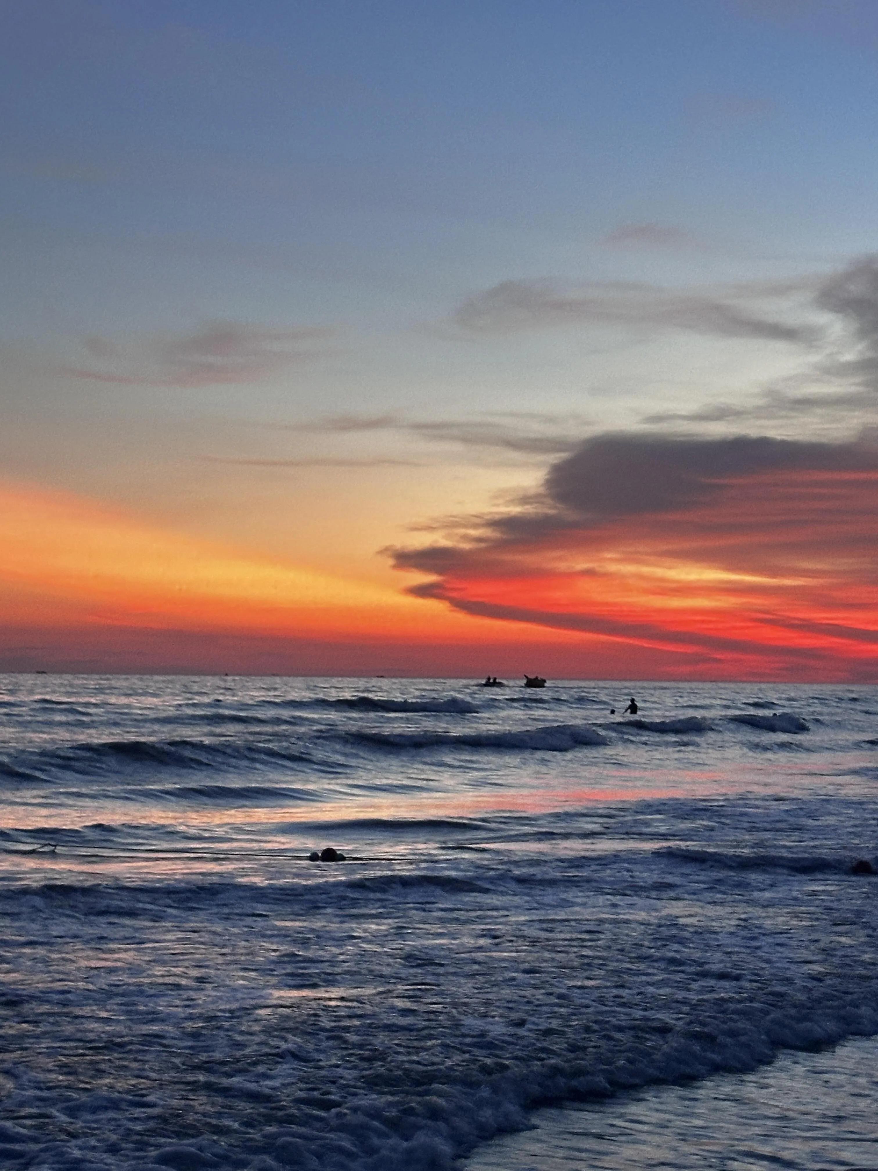 Day 4: 游览石海湾和神州半岛。下午在石海湾的“海狼日记”咖啡馆小憩,注意这里是人均消费。晚上在科洛娜日落餐吧观赏日落,虽然不及第一天的椰梦长廊火烧云惊艳,但偶然拍到了一对情侣入镜的粉色系照片,颇为满意。