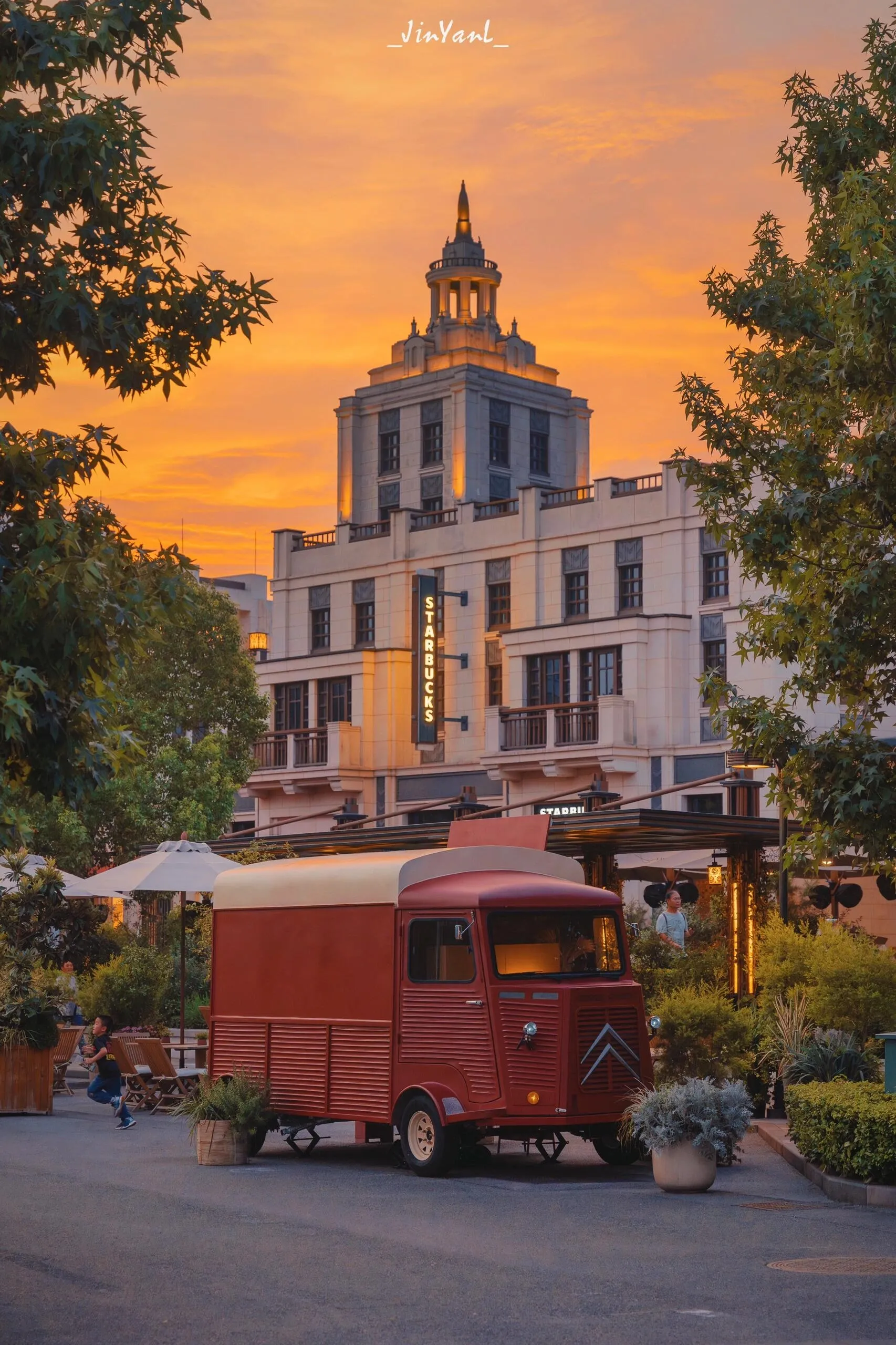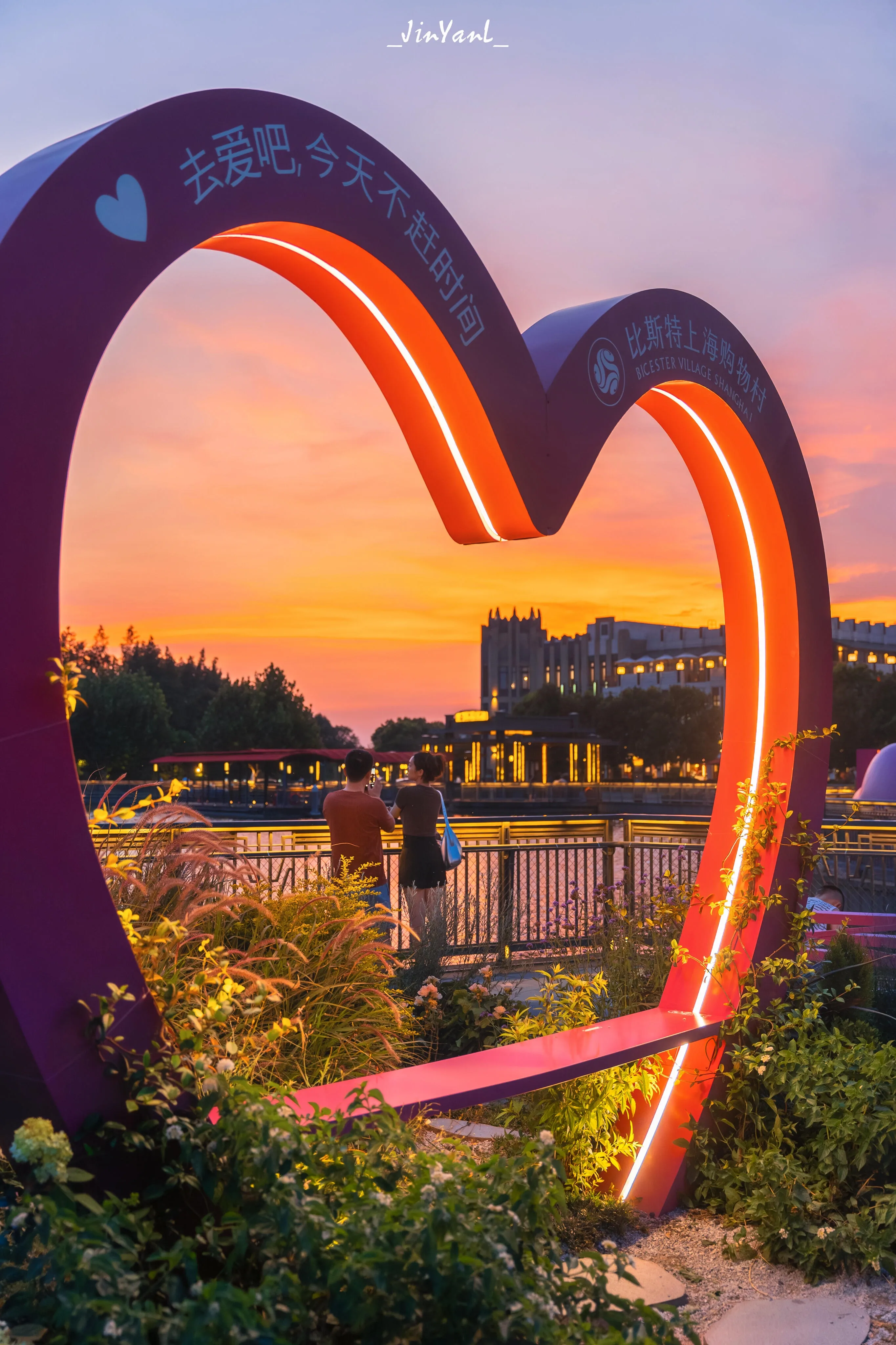 这里有欧式建筑和街道,毗邻迪士尼。傍晚时分,在湖畔可以独享浪漫的日落晚霞。村里的欧式街道、长椅、可爱餐车和爱心装置,都很适合简约休闲的穿搭,轻松拍出松弛感的欧美街拍大片。