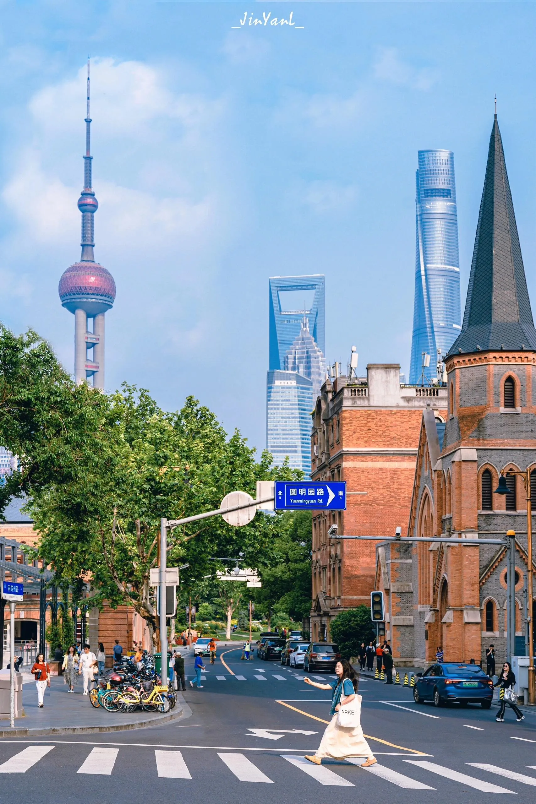 红砖教堂与现代建筑的同框,又是一场跨越古今的对话。