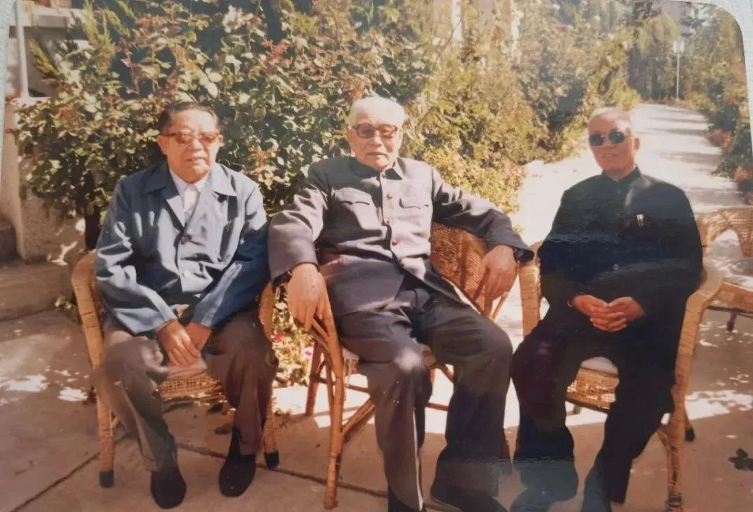 三位老人一起回顾往事,十分融洽,并在萧劲光的院子里合影留念,留下了一张珍贵的照片。