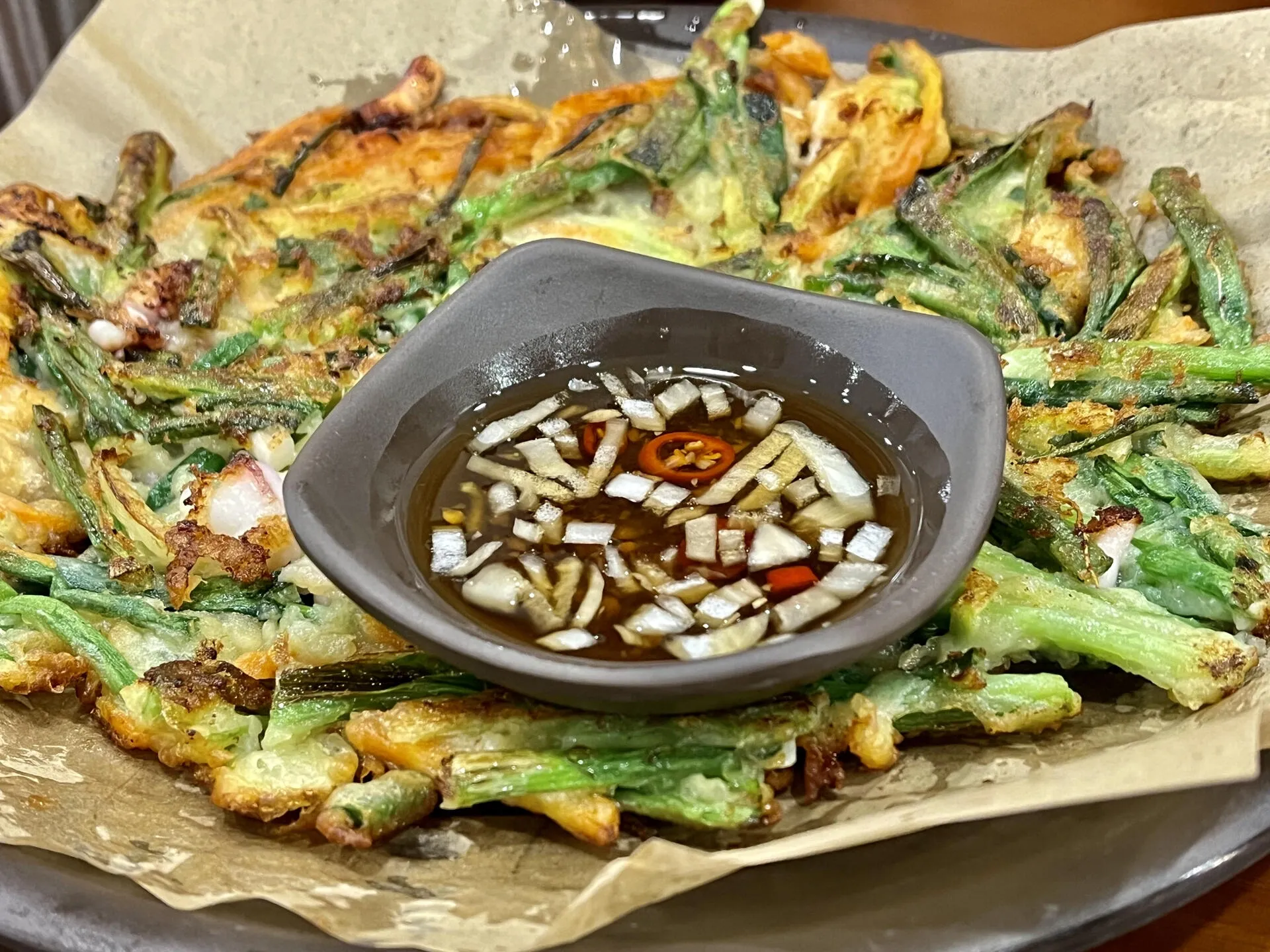 海鲜饼:必点!这是我在韩国街吃到最好吃的海鲜饼,酥酥脆脆,面粉含量不高,酱汁解腻爽口。