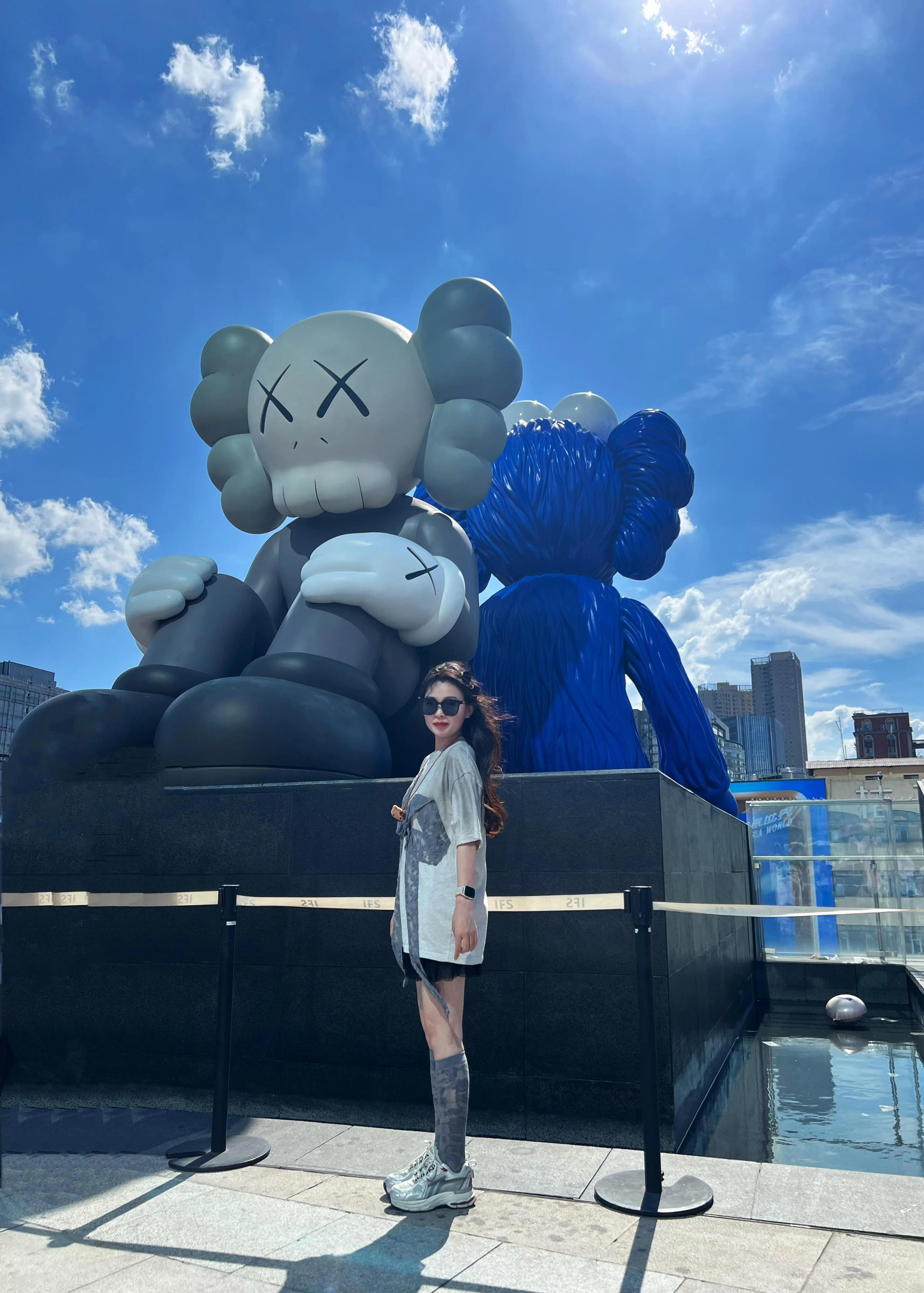同样的道理, 如果想去国金楼顶和两只熊COMPANION和BFF拍照的话,也可以选择中午过去。 我去了两次,一次是等傍晚太阳落山后,人超级多,会有保安大哥拦着,一次只放几个人进去,拍照也不方便,要等很久。另一次就是中午过去,人不多,不需要排队,随到随拍。唯一不足就是中午太阳很晒,一定要带墨镜,做好防晒,让你的同伴帮你快速拍!但是中午的天空和阳光真的很适合拍照,效果非常好。