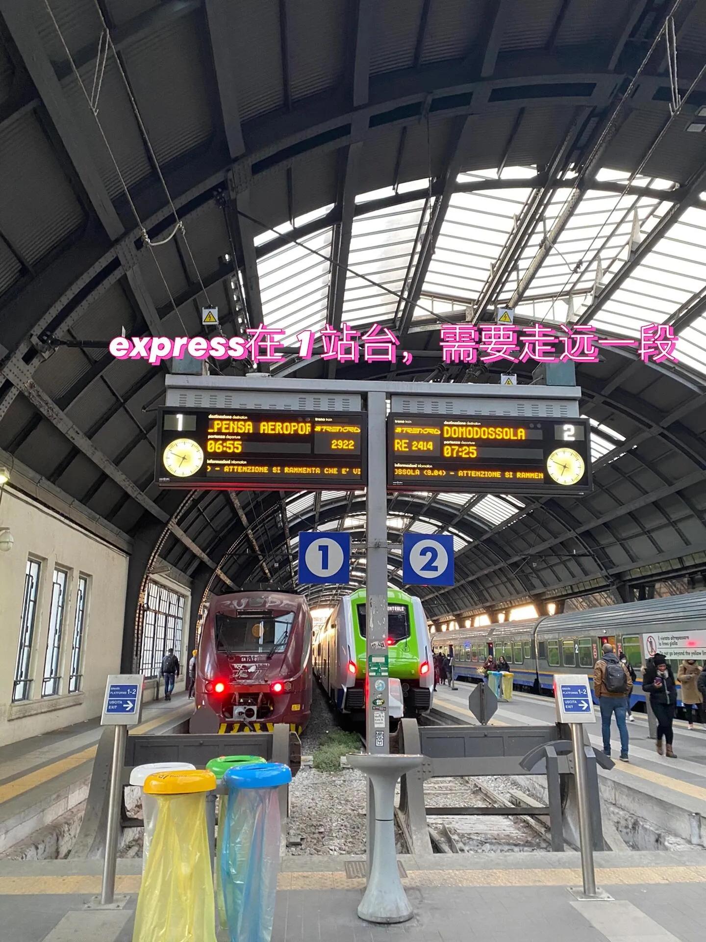 虽然听说很多人选择在米兰火车站外面乘坐大巴去机场,但我还是选择了火车。从中央火车站出发,每半小时一班机场express。