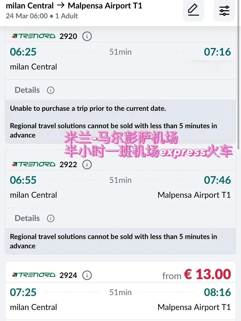 买票:可以在trenitalia官网购买,起点站选Milano Centrale,终点站选Malpensa Aeroporto T1。建议提前买好票。