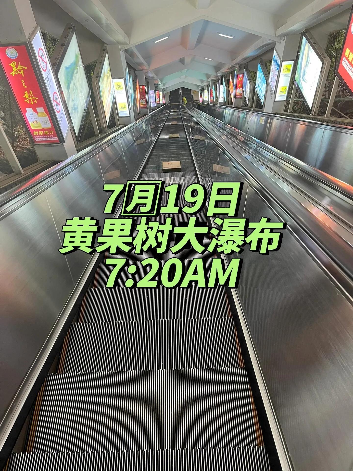 第二天早晨7:10从酒店出发,通过要客通道进入景区。7:20乘坐大扶梯上山,此时游客很少,基本都是住在景区内的。我们悠闲地游览大瀑布,360度欣赏壮观景色。在水帘洞里,没有人催促我们,可以反复走动拍照。等我们游玩结束下山时,游客才逐渐多起来。8:40我们再次乘坐扶梯时,对面下来游玩的人已经不少了。