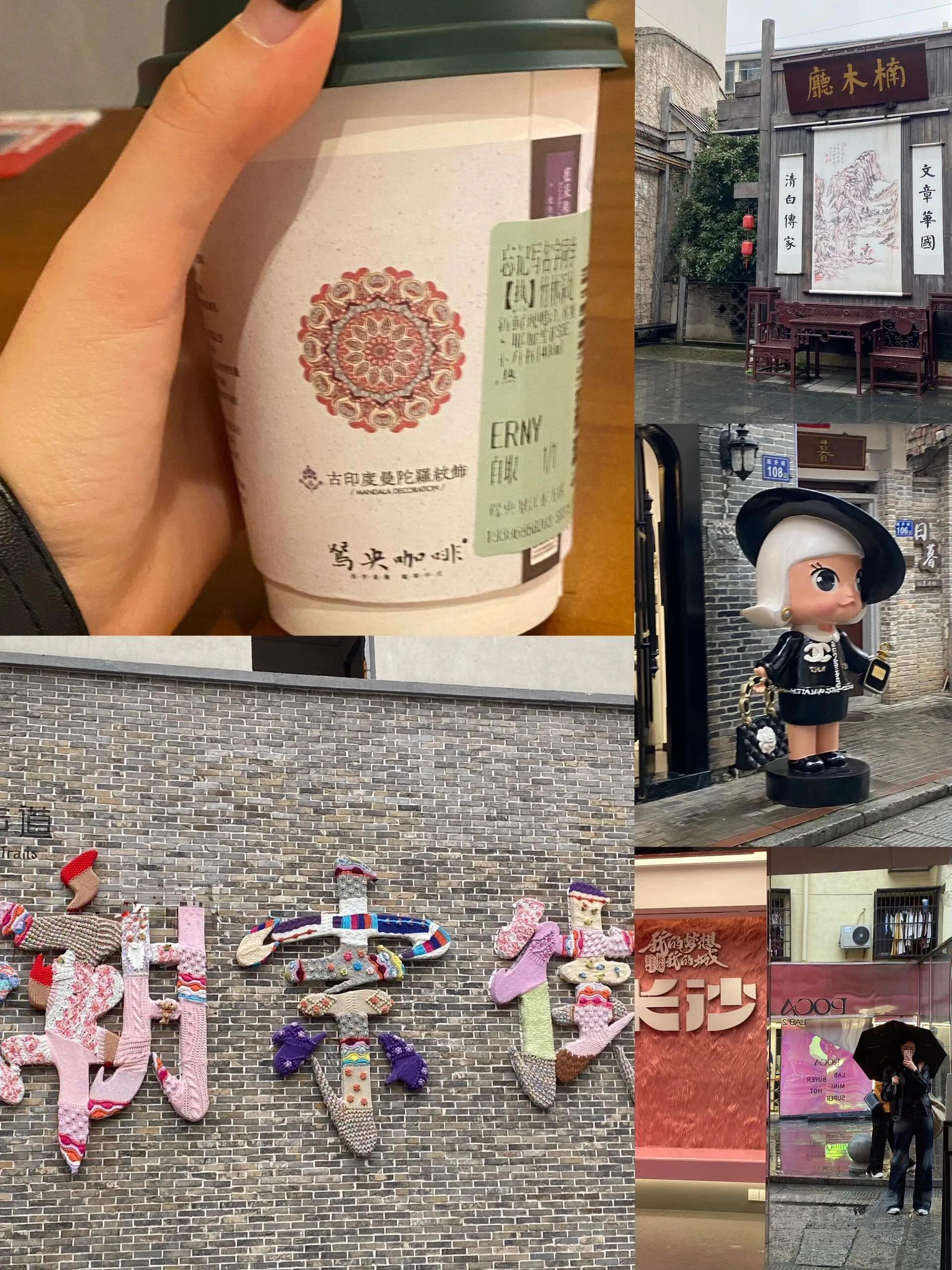 中午坐地铁到五一广场随便吃点,顺便品尝了鸳央咖啡。 下午步行到潮宗街,这里有很多特色小店和潮牌店可以逛逛。 建议提前规划好路线,因为里面很容易迷路。