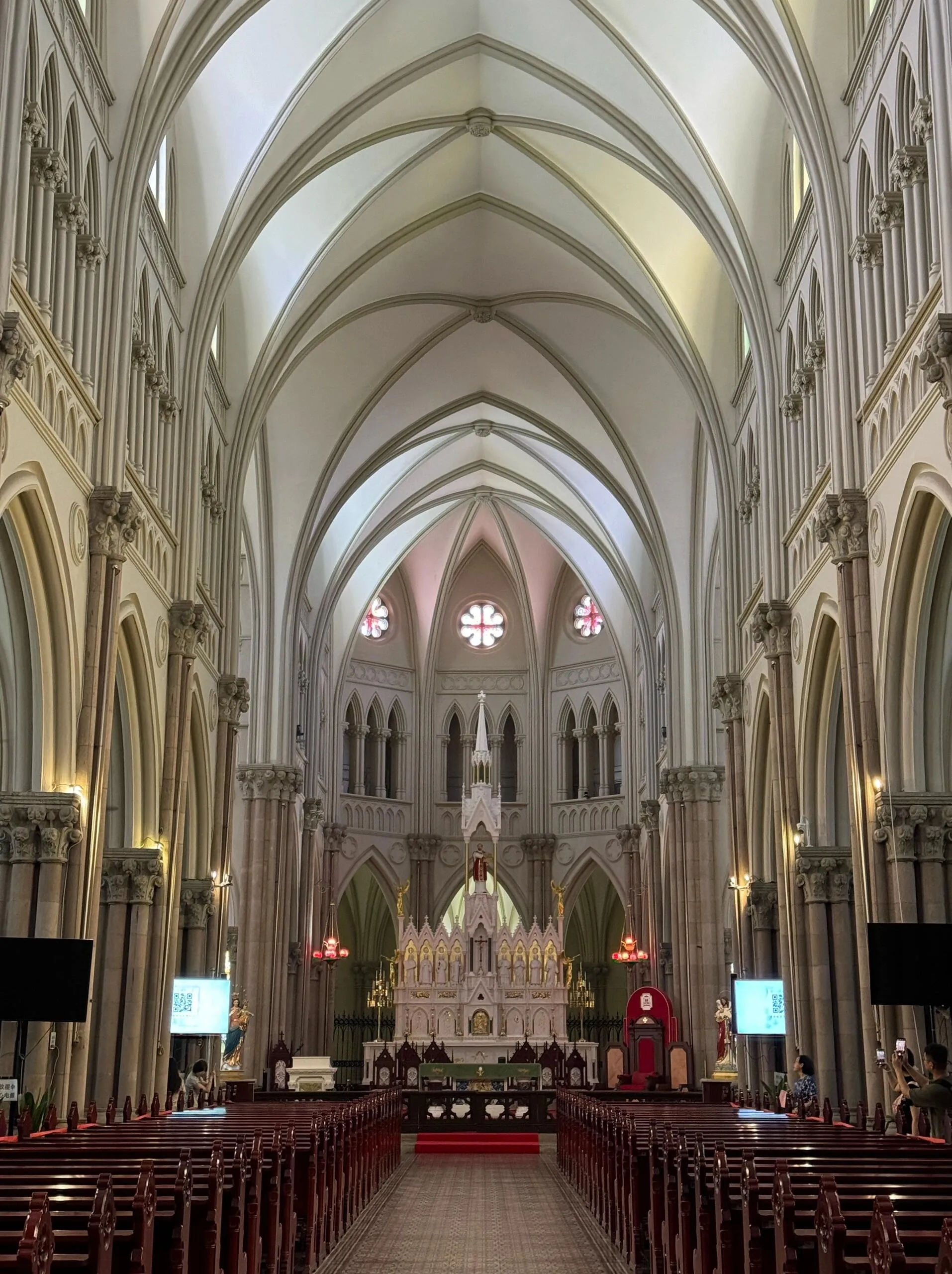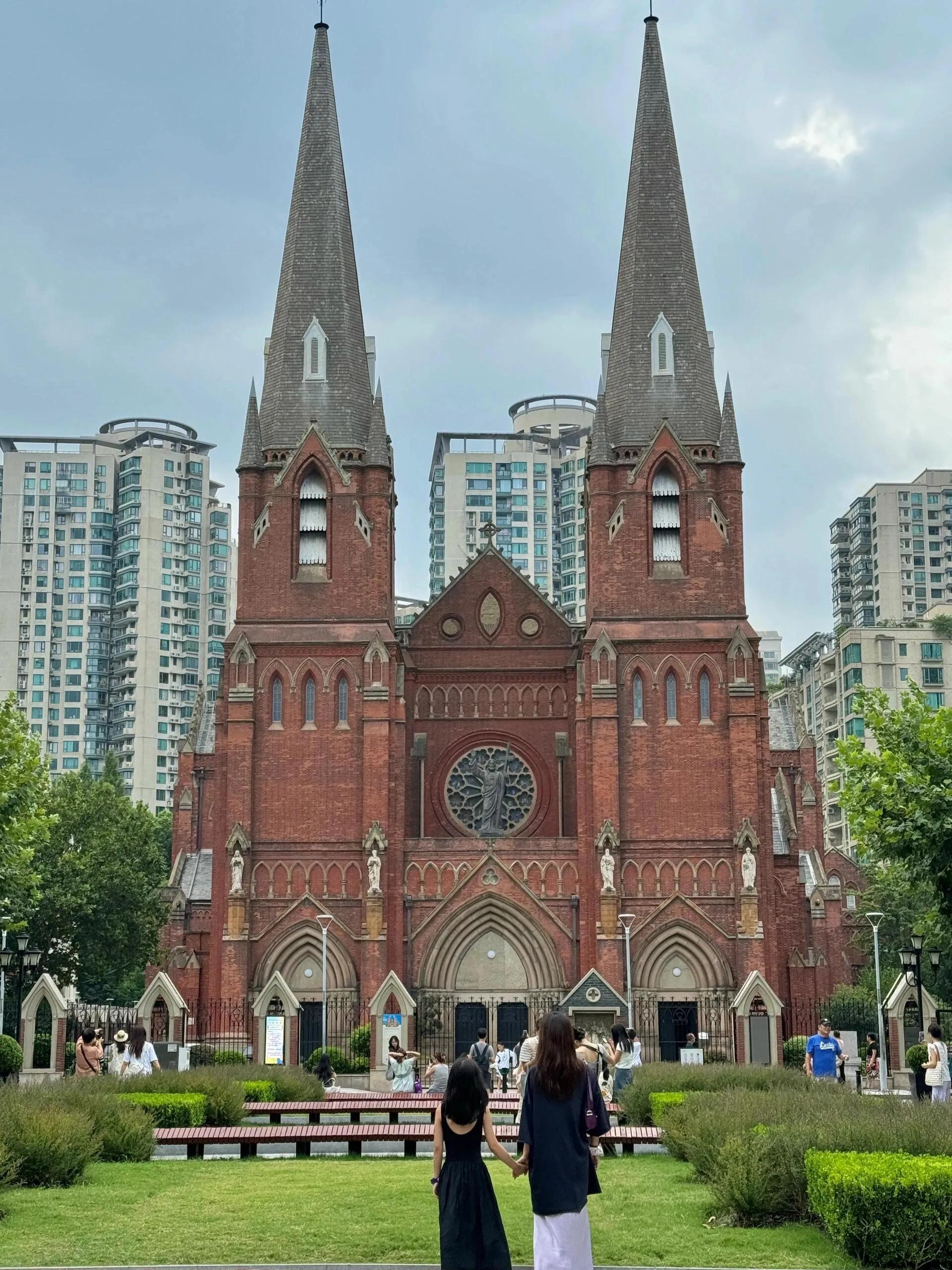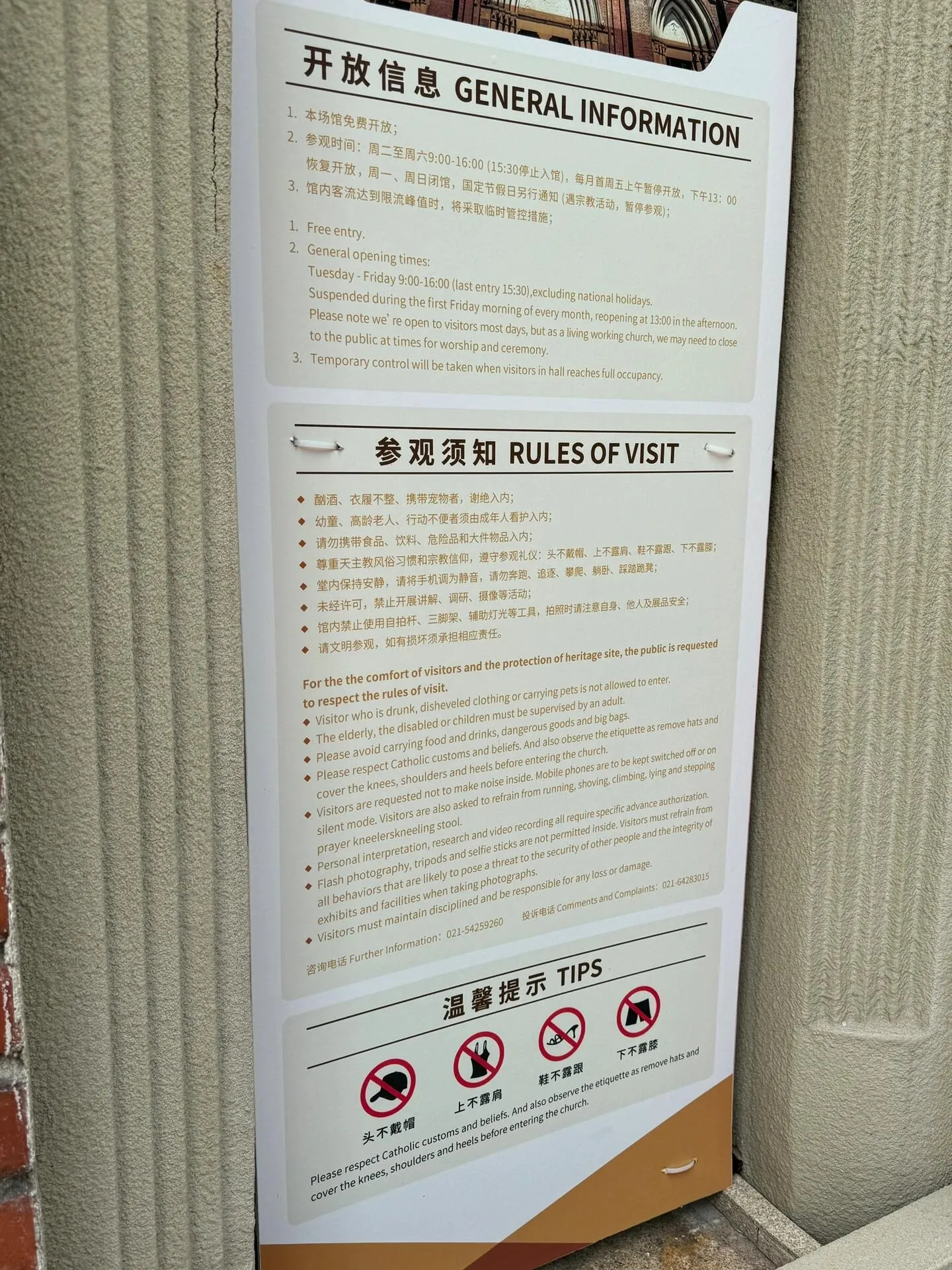 用餐后,我们来到了旁边的徐家汇天主教堂。值得注意的是,进入教堂内部有一些着装要求,不符合要求是不能入内的。