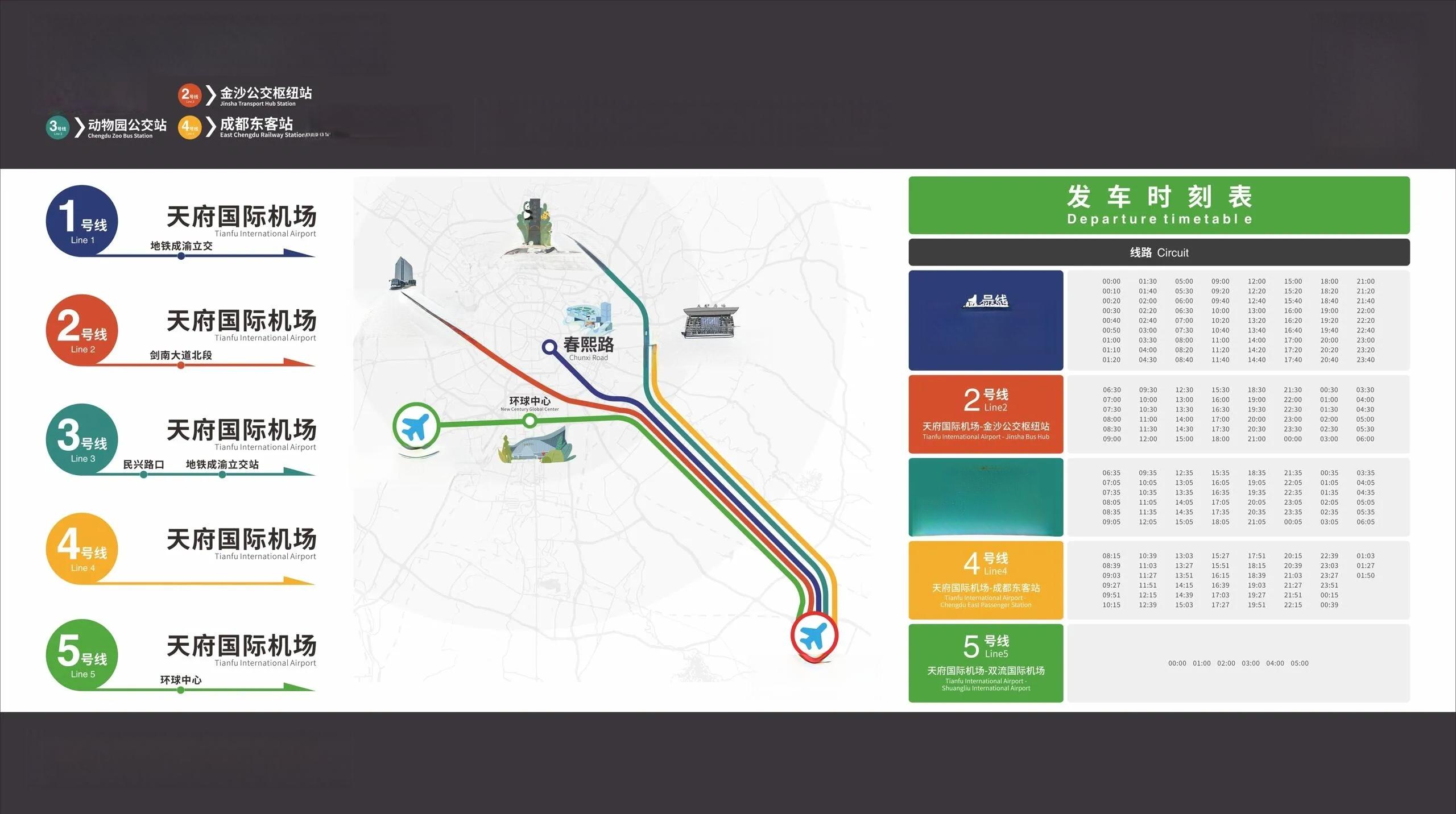 除了从机场出发,这个大巴在成都市区也有几个出发点前往机场,包括春熙路、东站、动物园和环球中心,给乘客提供了多种选择。